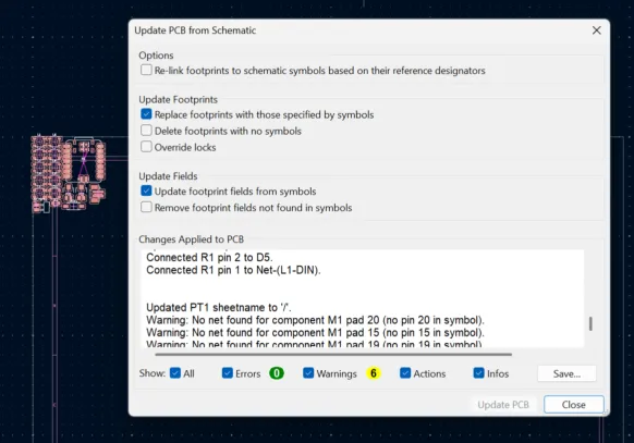 2. Click update PCB from schematic.