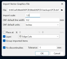 2.3 Import them as DXF and place it on the Edge cut layer.