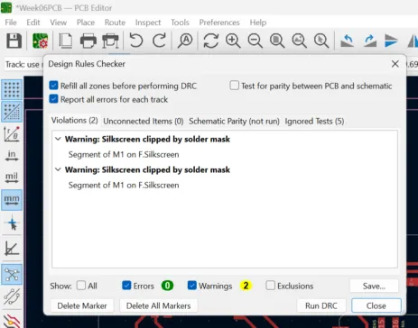 You can also verify if everything is correct if you go to Inspect and click on Design Rules Checker (DRC).