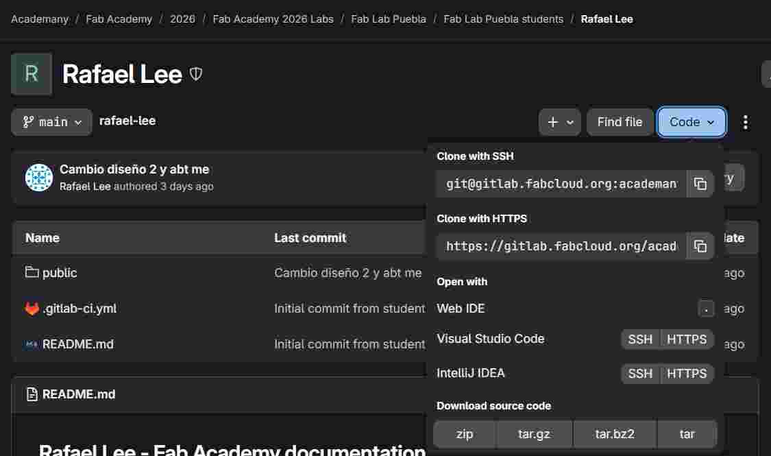 The following section shows the process of creating a web page by using VS code, Git and Gitlab tools. We start by installing the Git and VS code. Once installed both apps we need to go to the following link and search for our Fab headquarters and look for ourselves in the students section.