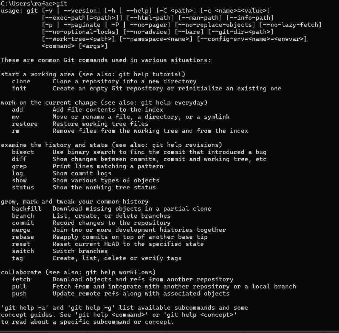 We go to our computer terminal and we put the git command, here we can see some of the commands we can use when using Git, then we can enter the command of git clone and the link we copied.