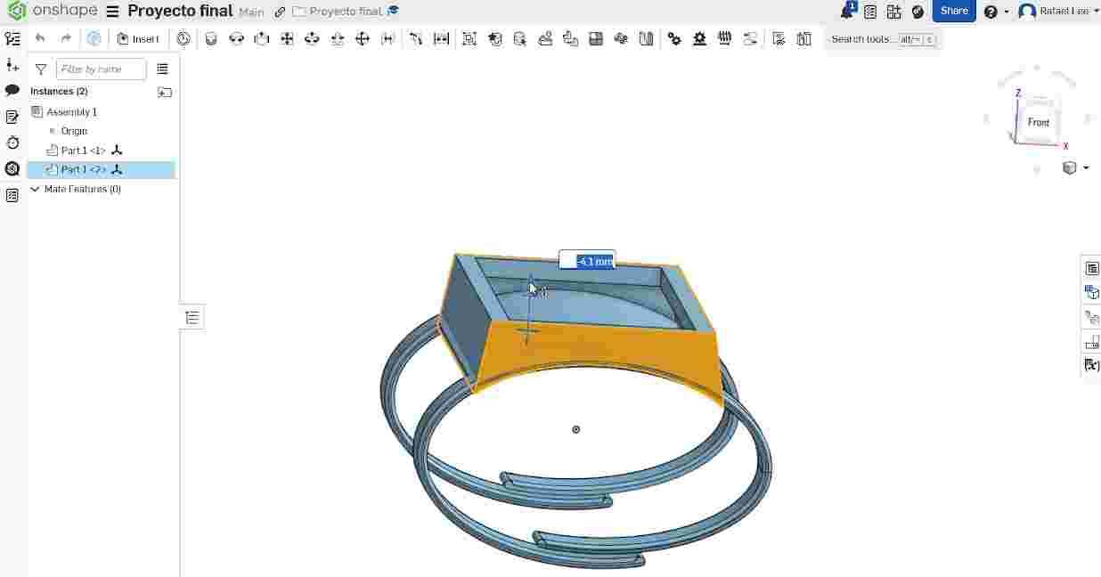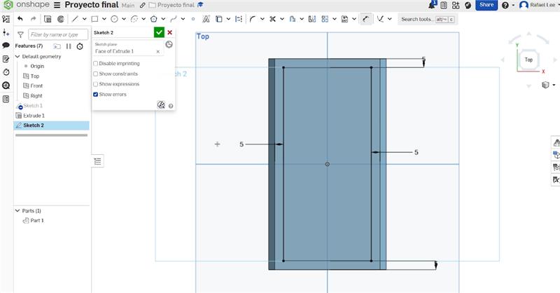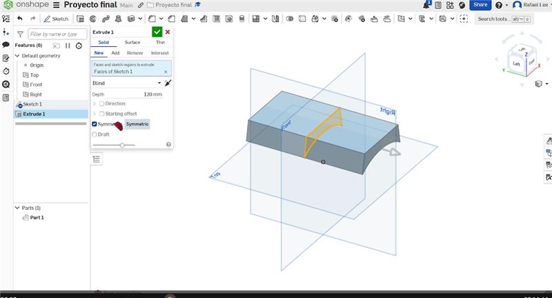 For the final part I again went to copy the measures of past rectangle and extrude it,