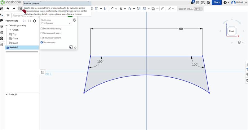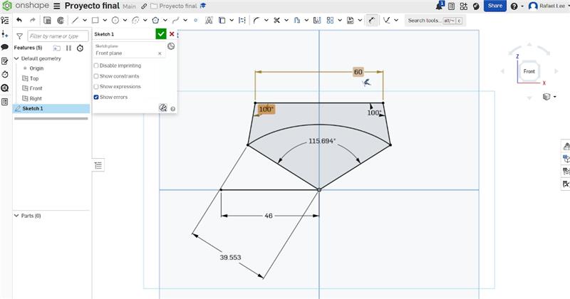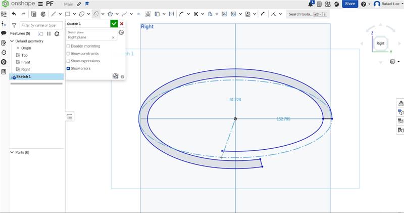 I got in OnShape so I could use a different technique for the sketch by marking lines and using curves