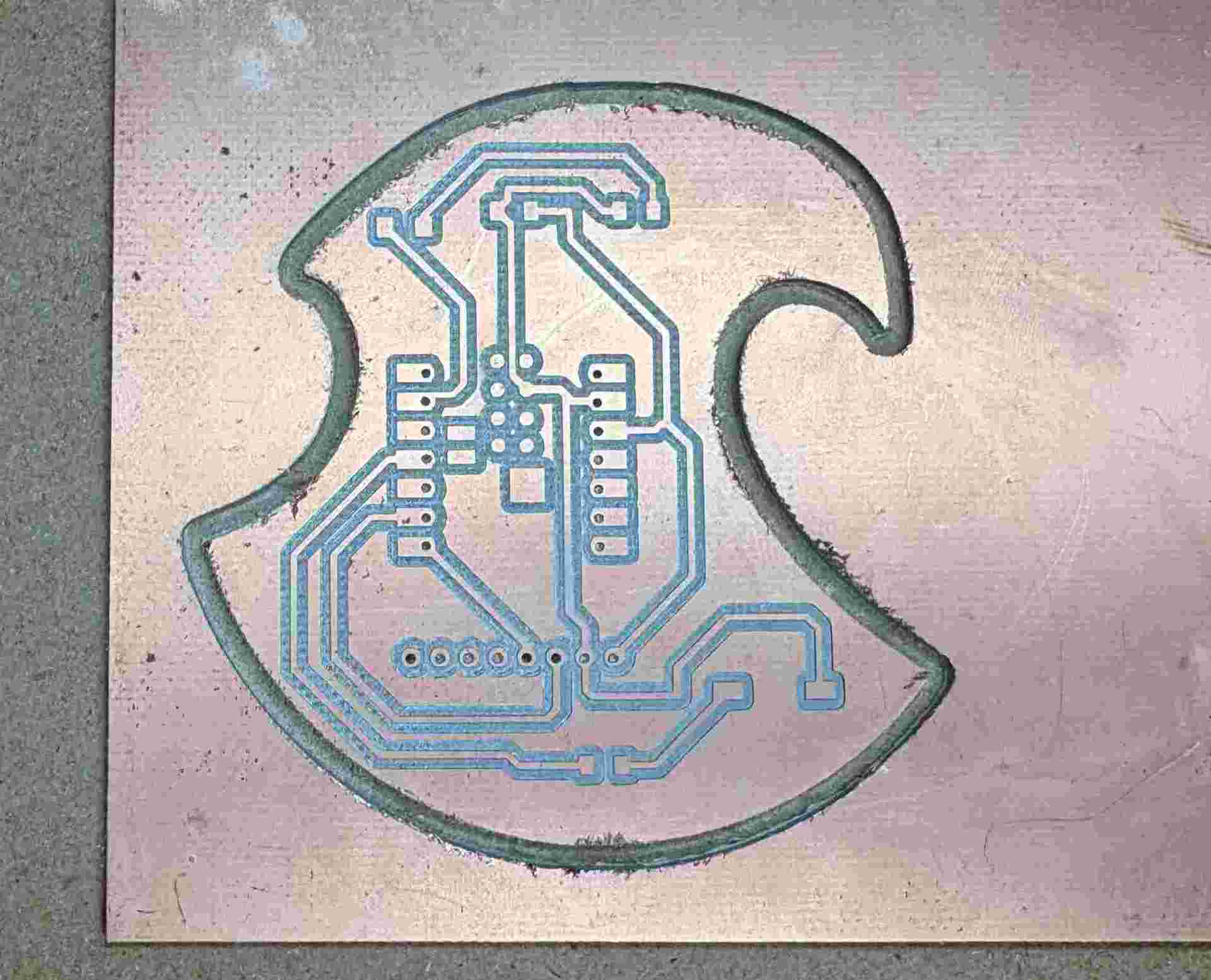 - Drilling and Contouring: After the traces were cleared, I executed the drilling cycle for component leads and finished with a profile cut to release the board from the stock material.