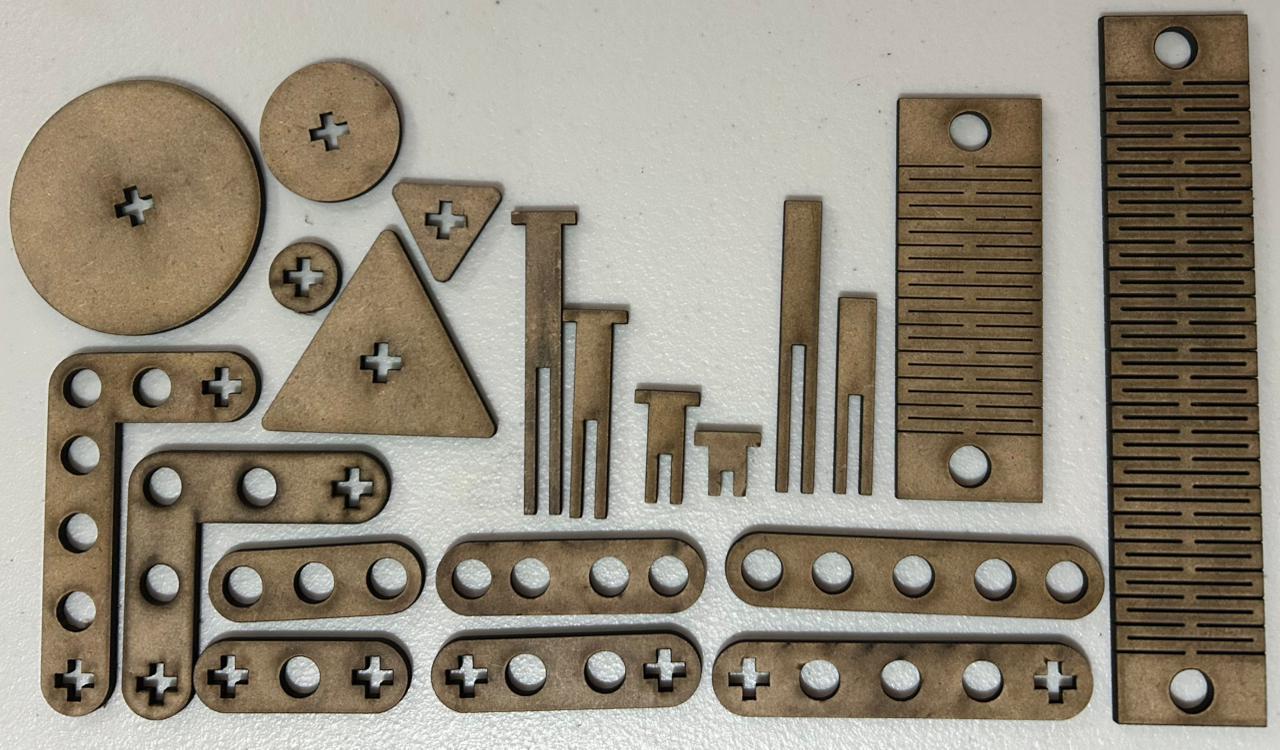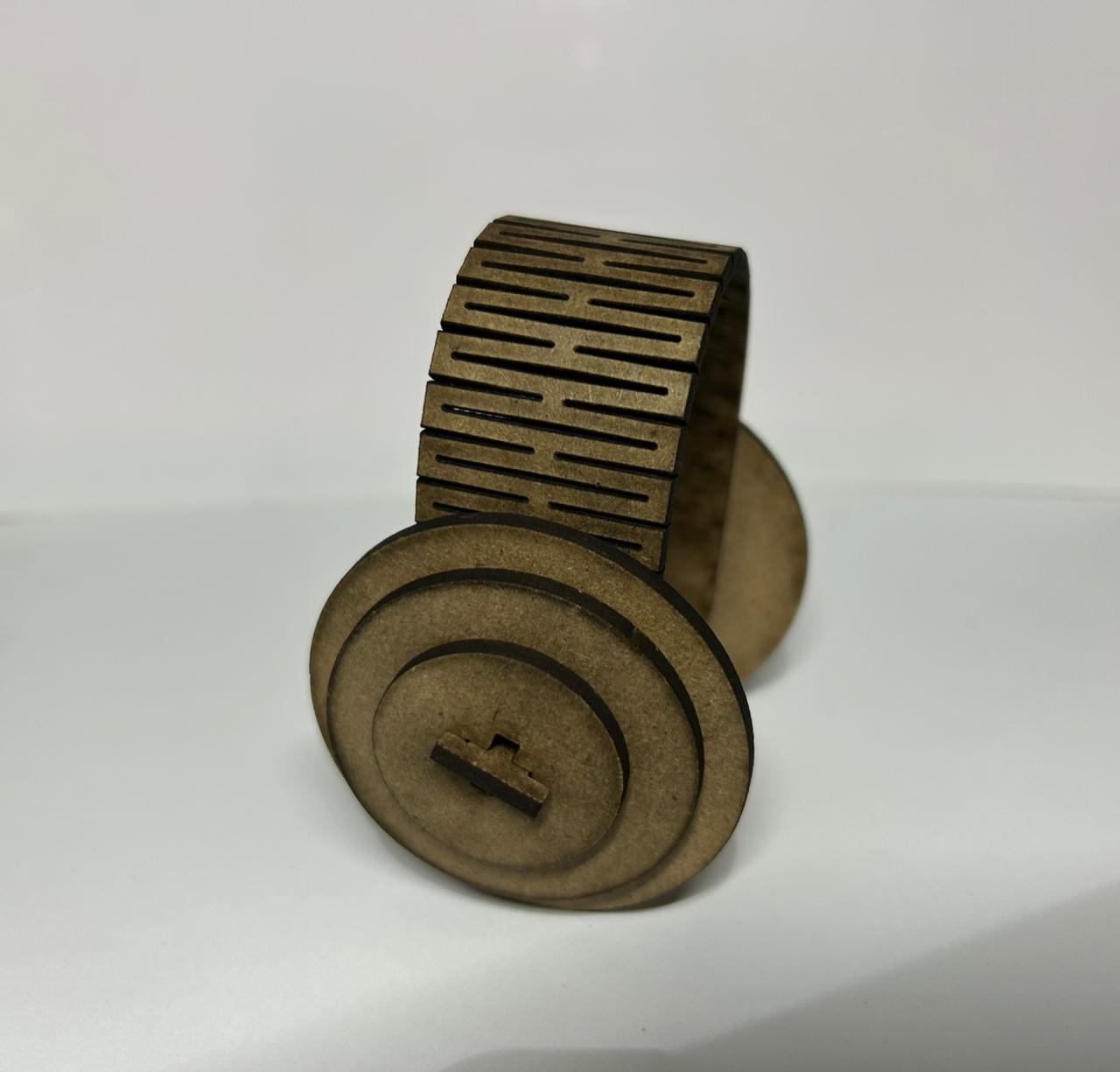 This circular piece was designed with a multifunctional approach. Its geometry facilitates mobility and rotation into various mechanical assemblies. To make the circle parametric, I set variables to modify the diameter, thickness, kerf, and the large of the cross in the middle. By simply modifying the values in the global parameters, the entire design is updated.