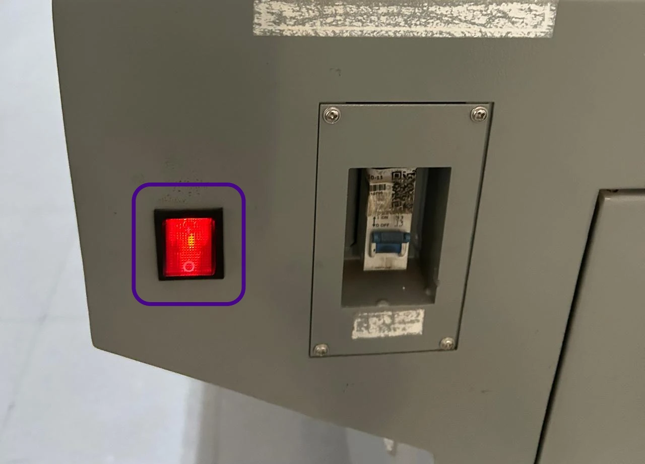 First thing to do before starting the laser cutting process is to turn on the chiller system.