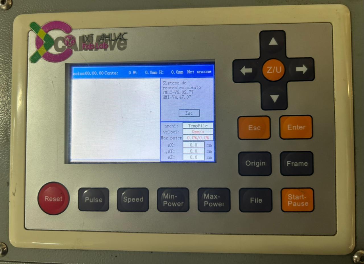 After inserting and turning the key the laser control panel activates, the control panel provides access to all system controls and settings. You can move the laser head using the arrow keys on the control panel.