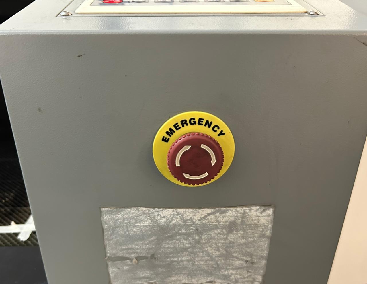 To start release the emergency stop button. Always be aware of the emergency stop button location. In case of an emergency, press the emergency stop button immediately to shut down the laser system.