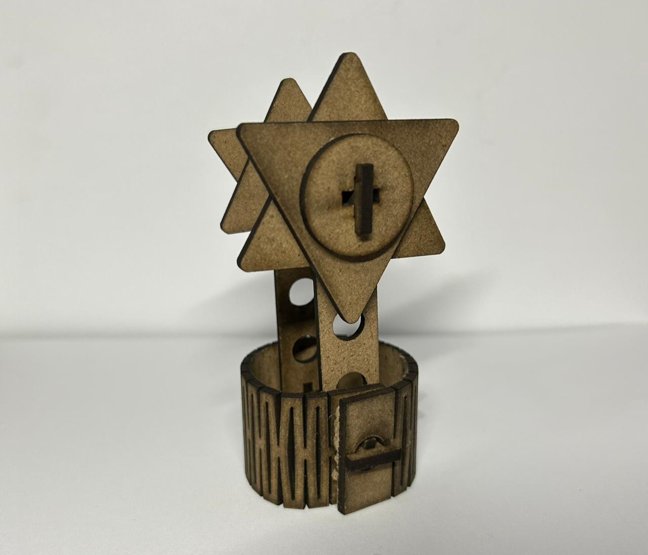 This triangle piece is designed to add creativity and variety to the modular kit. For the triangle piece, I defined the variables for thickness, kerf, long of the cross and the diameter of the circle in the center.