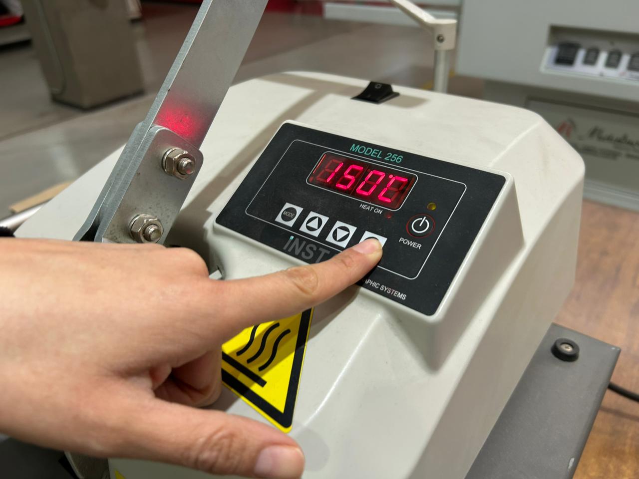 Once everything is set up, move the heat press machine to the accurate position and lower the lever until you hear a click. The start process will begin automatically.