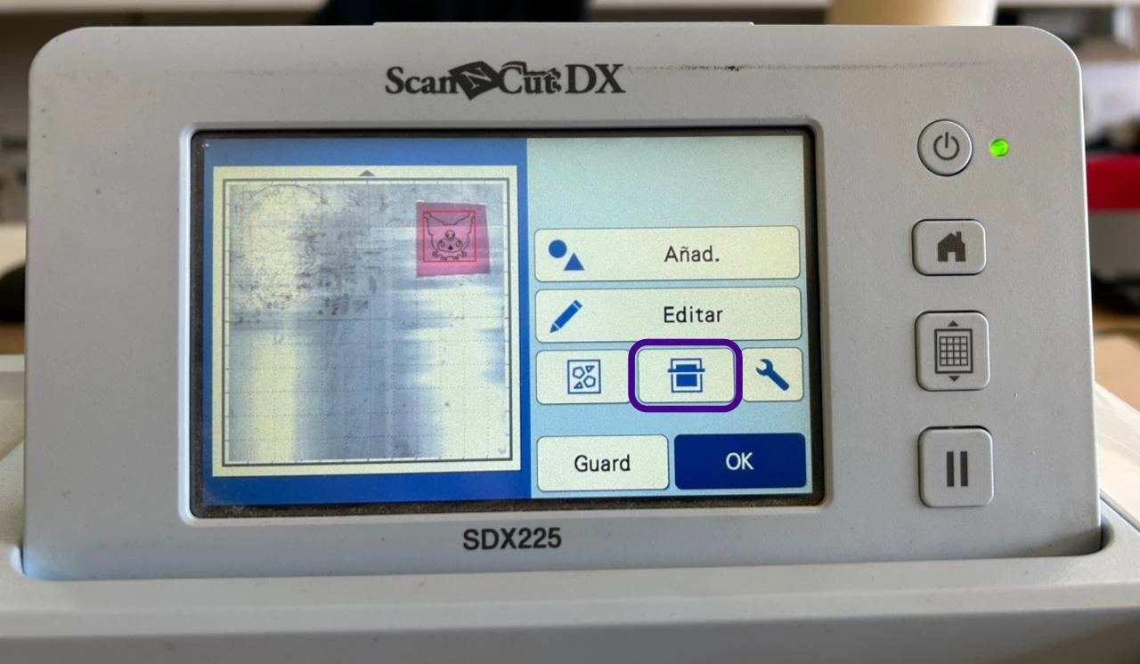 The button in the middle allows you to scan the cutting mat, which helps to ensure accurate alignment of your design.