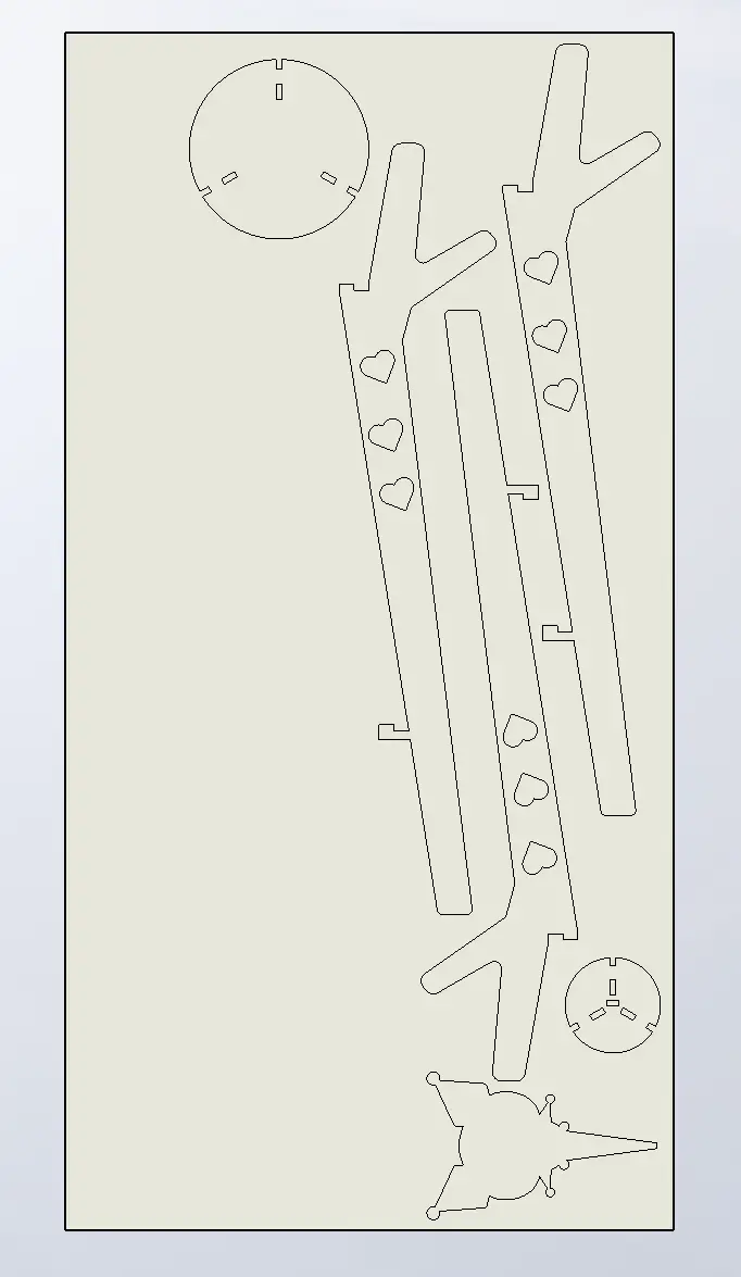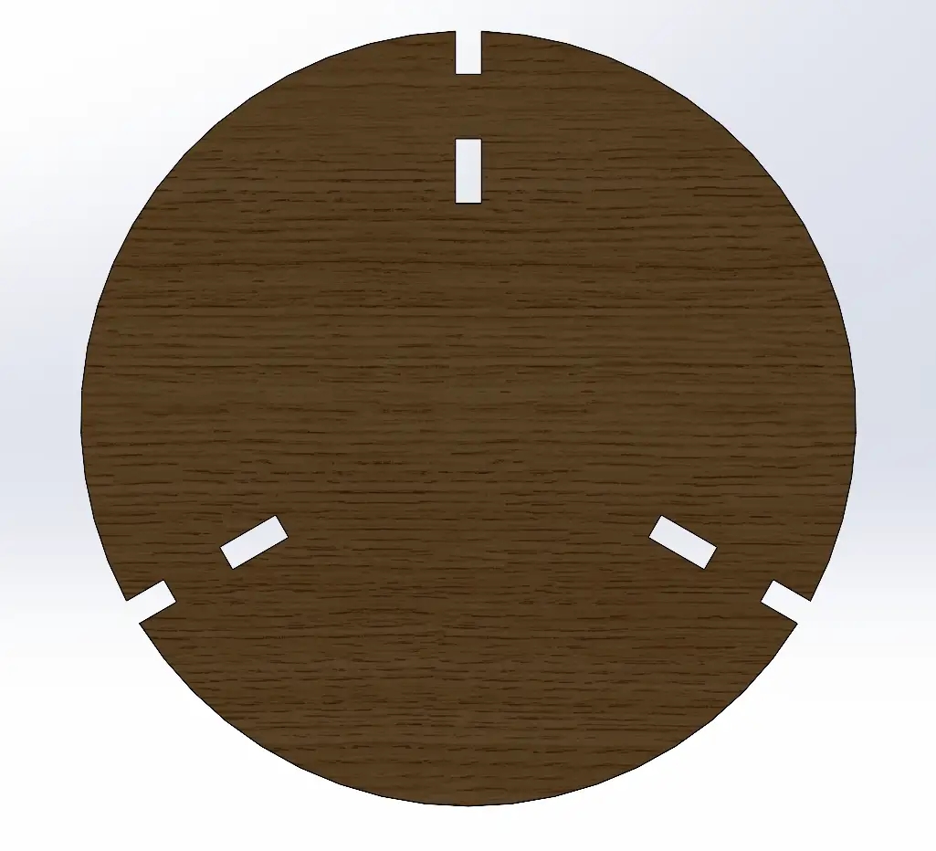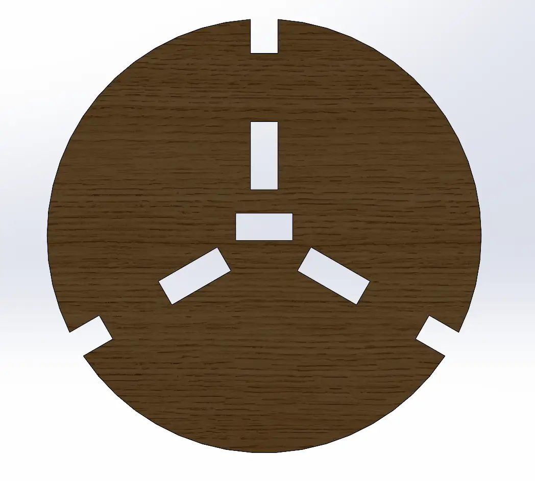I used SolidWorks to design the pieces, setting the joints to 12 mm to match the thickness of the provided plywood (1.22 m * 2.44 m).