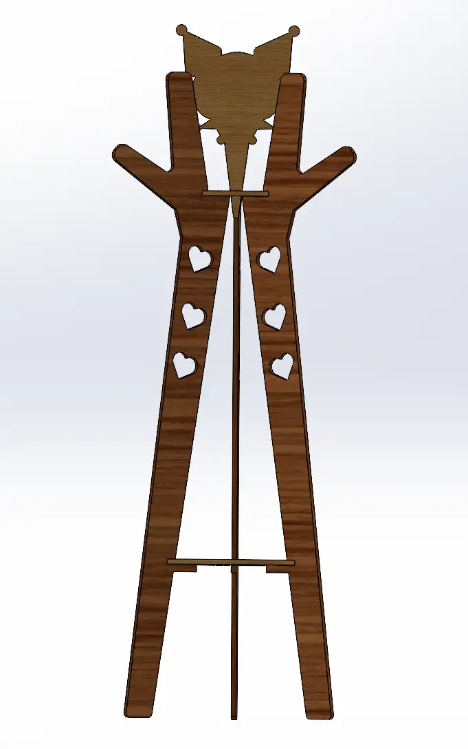 Once I designed all the individual pieces, I put them together in an assembly to verify that everything fit perfectly. This step was essential to ensure the structural integrity of the coat rack before moving to the milling stage. Here is how the final design looks in the assembly:
