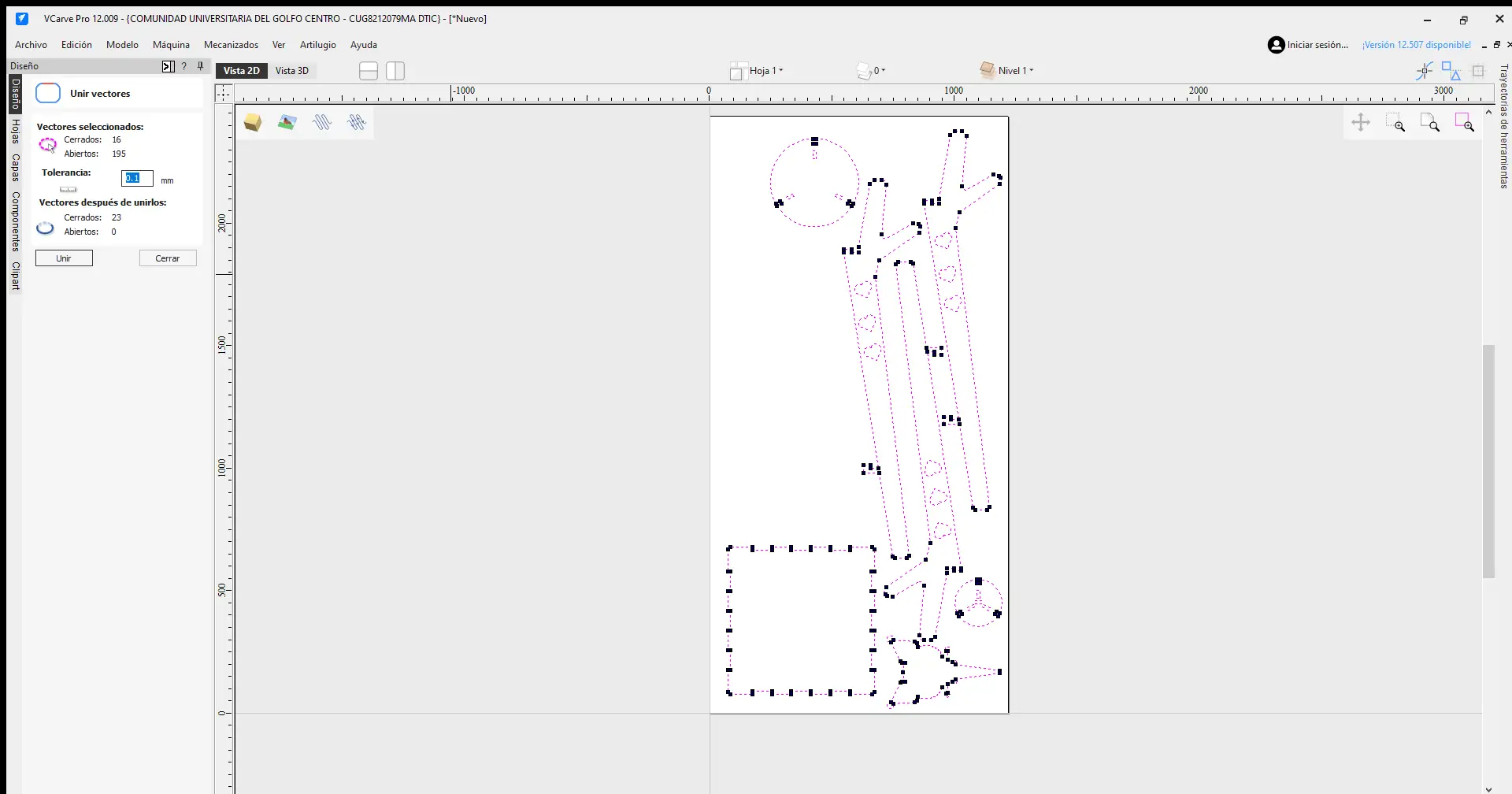 After importing the pieces, the first thing we must do is join the vectors. Since the components are often imported as separate segments, leaving them this way would make the milling process much slower and less efficient. To fix this, we use the Join Vectors option circled in purple.