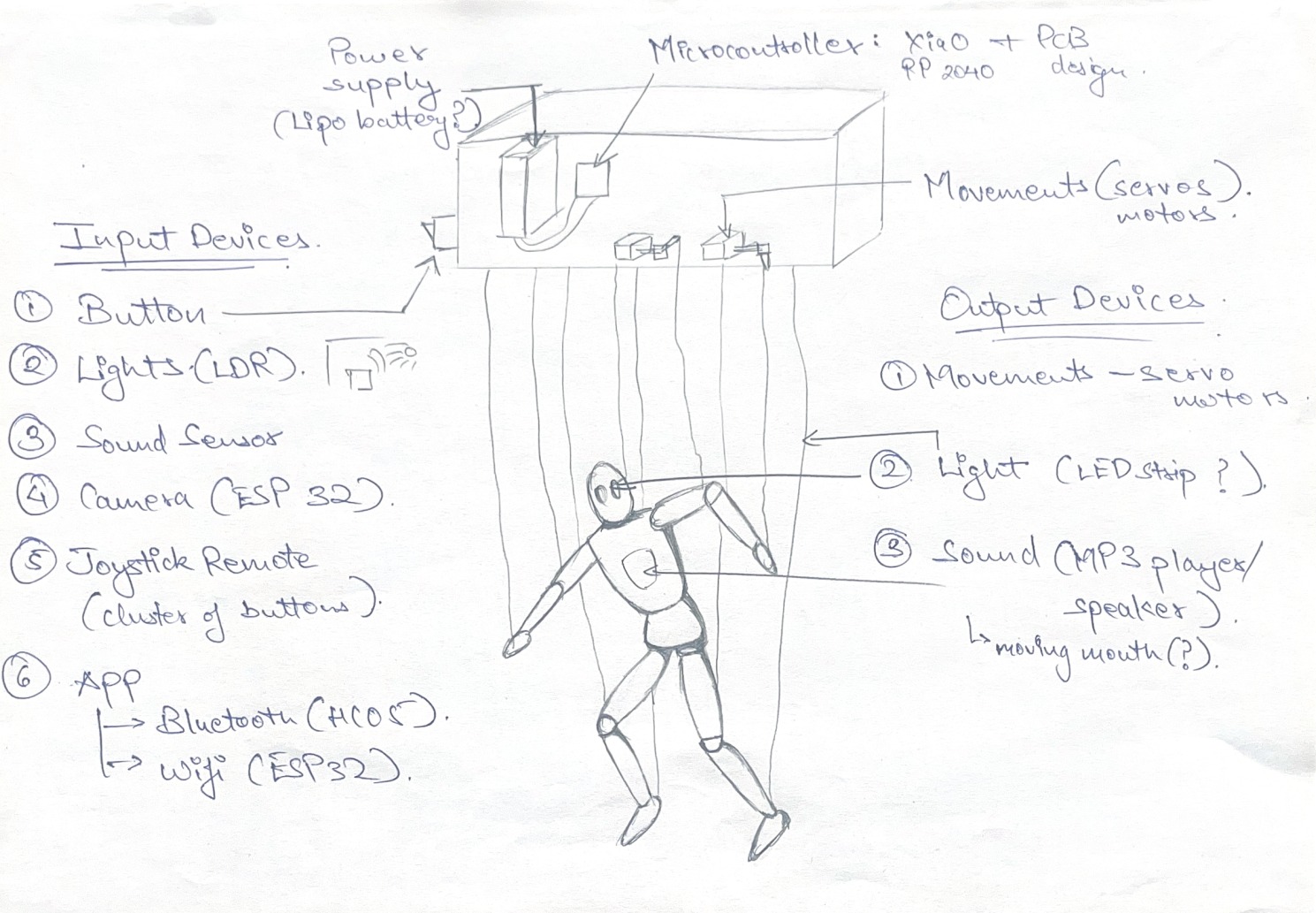 · Puppet Entity: Abstract skeletal structure fabricated through 3D printing and optional molding/casting