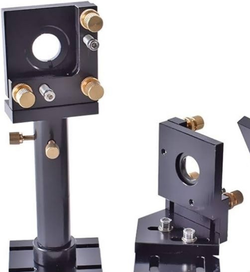 The long glass tube generates the laser light. From there, the beam doesn’t directly go to the material. Instead, it hits these small mirrors mounted at 45°. These mirrors keep bouncing the beam around corners until it reaches the cutting head.