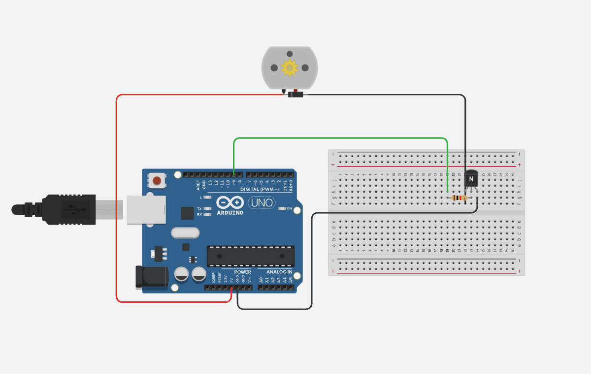 Arduino Pin 9 → Resistor (1kΩ) → Transistor BASE