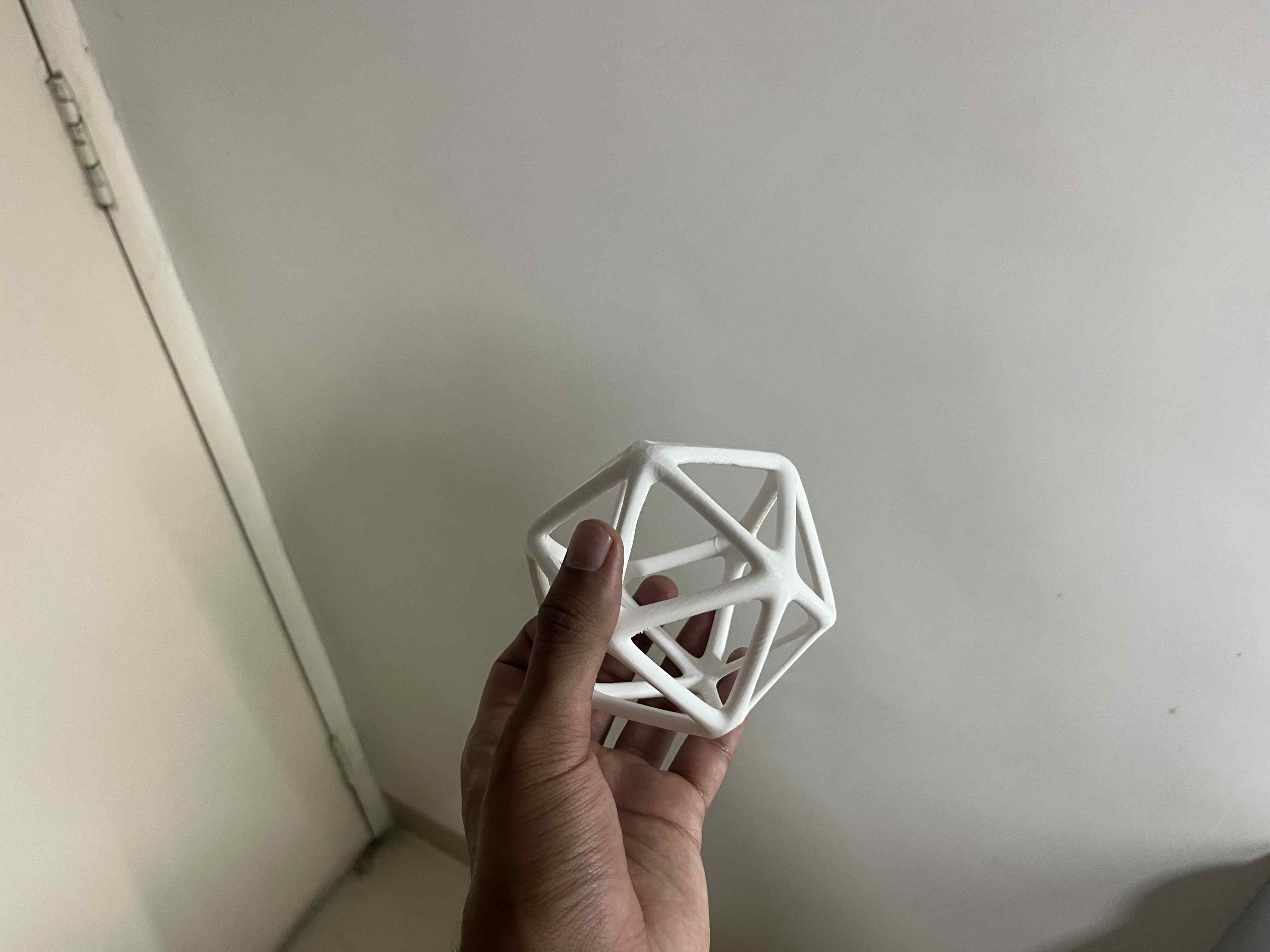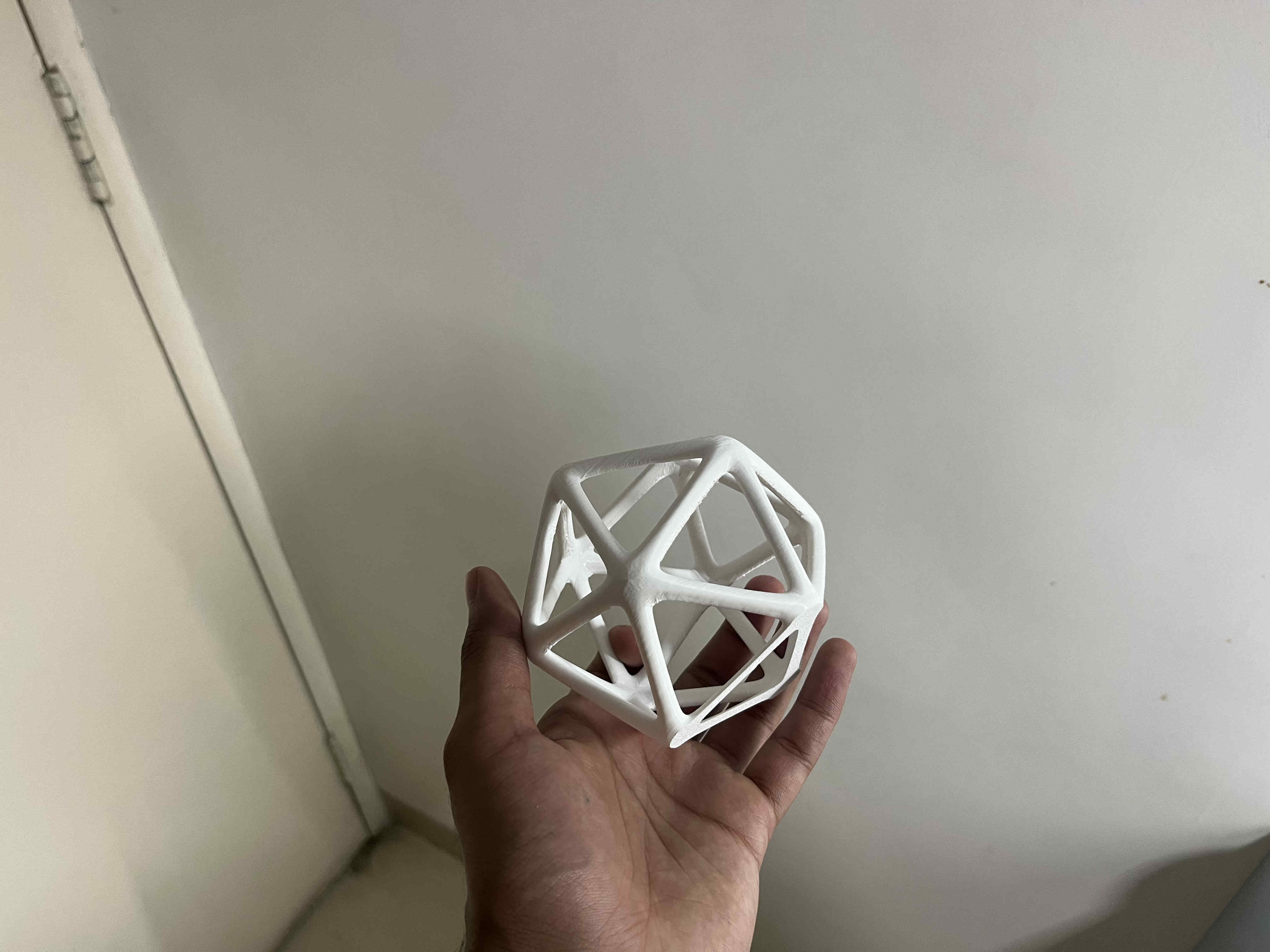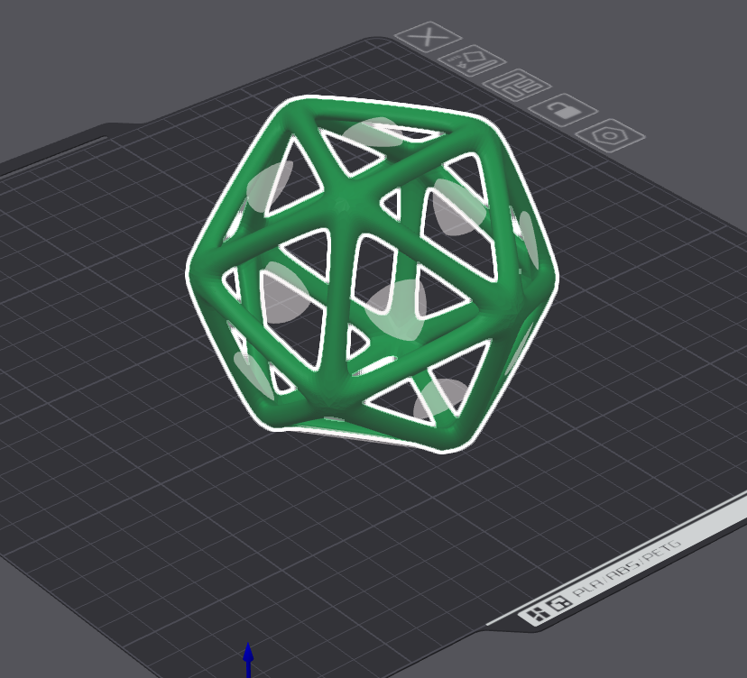 Remember to apply your modifiers Wireframe icosehedron is ready Modify your thickness well. thinner structures like this that are curved at the bottom won't stick well to the bed plate. causing the print to failImport STL to your slicer You can take help of the automatic lay on face option, to make one side of the model completely flat to the bed plateFor the sake of preventing brims and print quality i chopped 3 mm of the bottom section to make it flat.