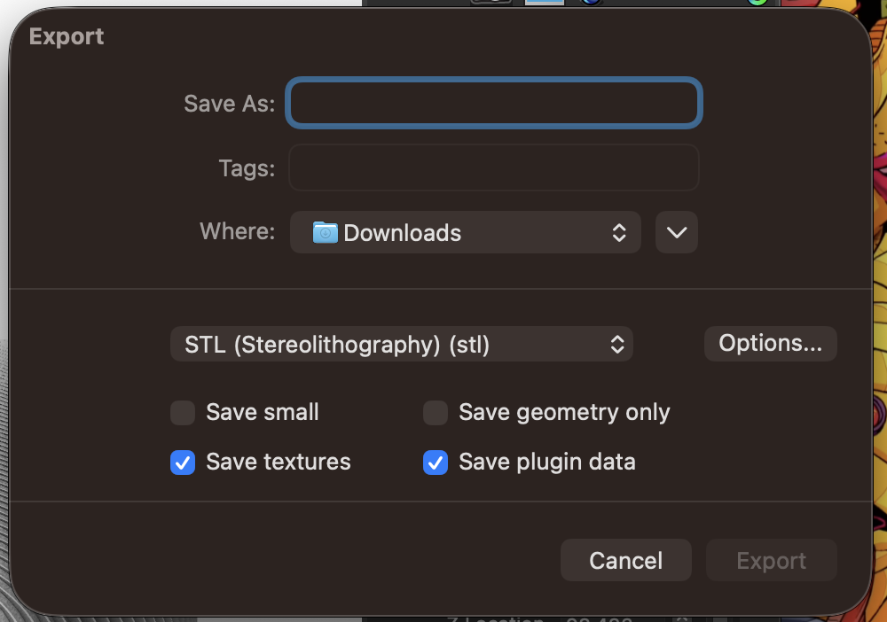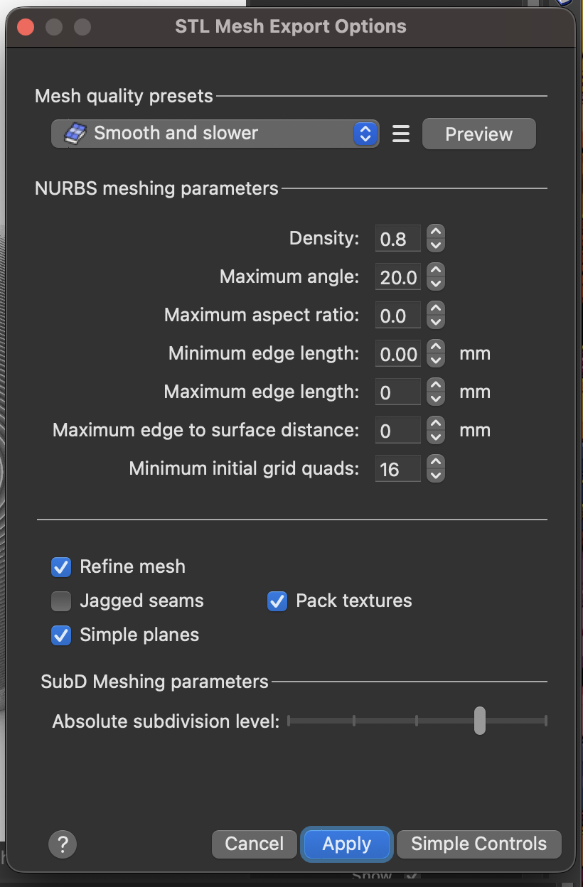 Export using stl with the same check boxesRemember to go to detailed export and switch to smnooth and slow and untick jaggered seamsI have not documented every single detail to create but rather major steps. to create follow along the listed youtube video