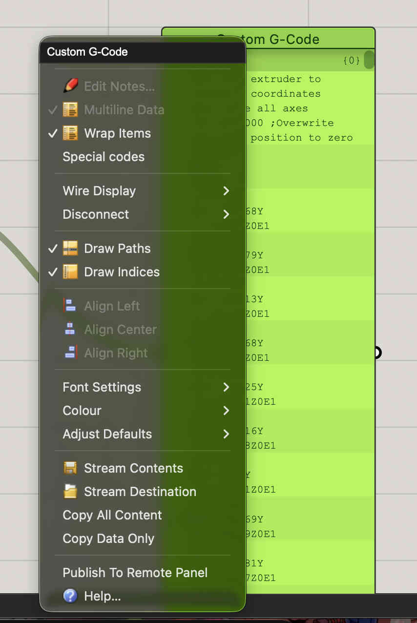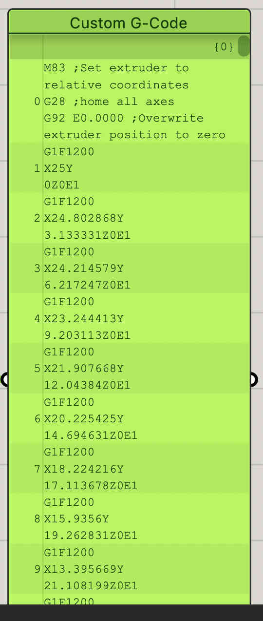 On the right side of the screen you can see the result being seen on a panel. and i have also set a start protocol and an end protocol which i then bring to a final panel creating a g codeA basic gcode for a cylinder is ready.Right click and COPY DATA ONLYPaste the text onto the most complex software of all time- notepadExport it as .gcode, remeber to untick .txt default saving command