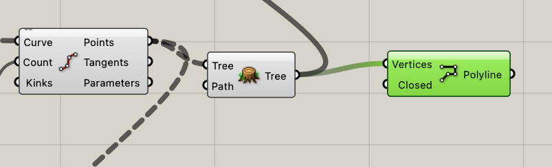We can make a tree of the previous curves and feed it into a polyline commandResult