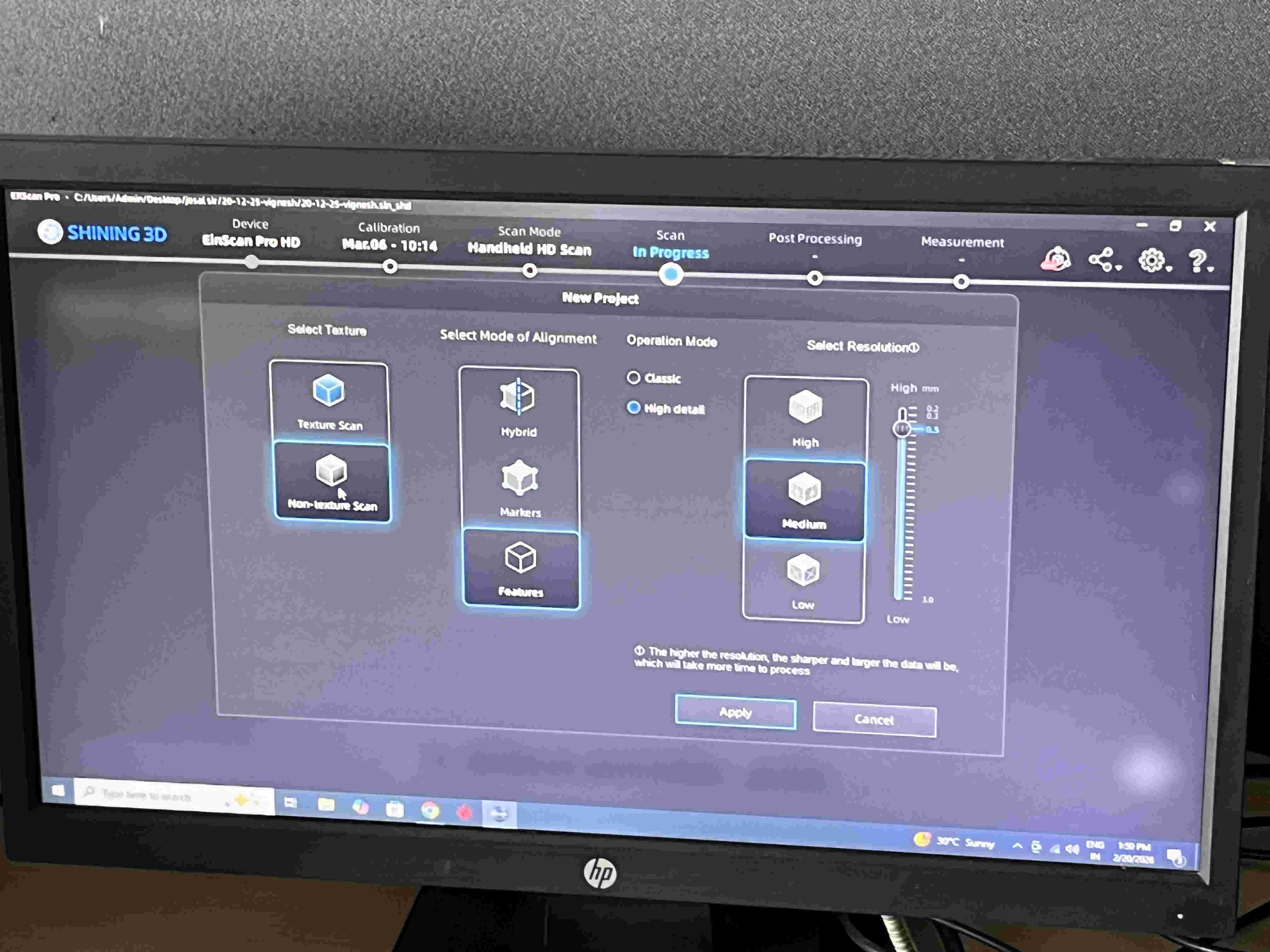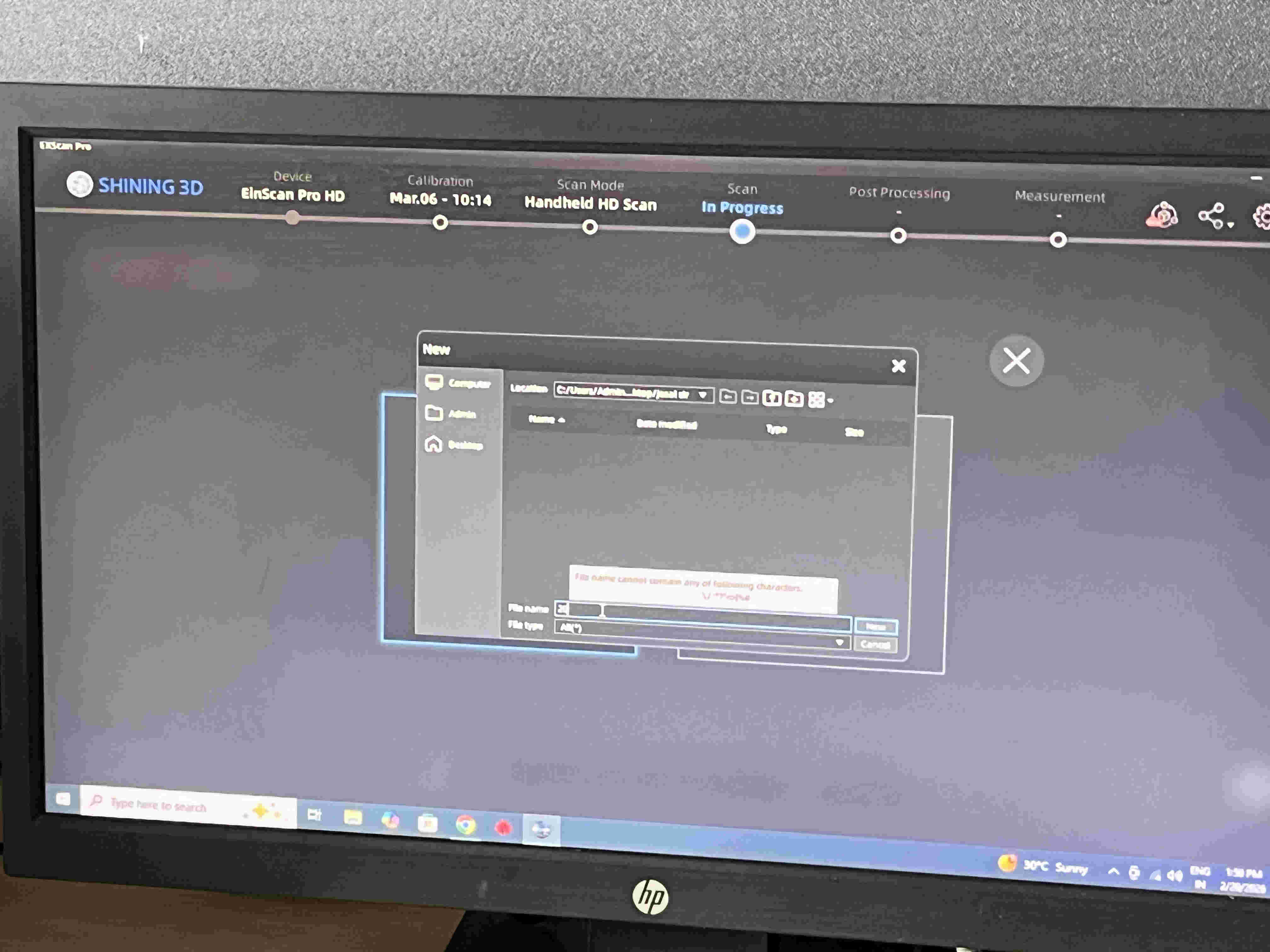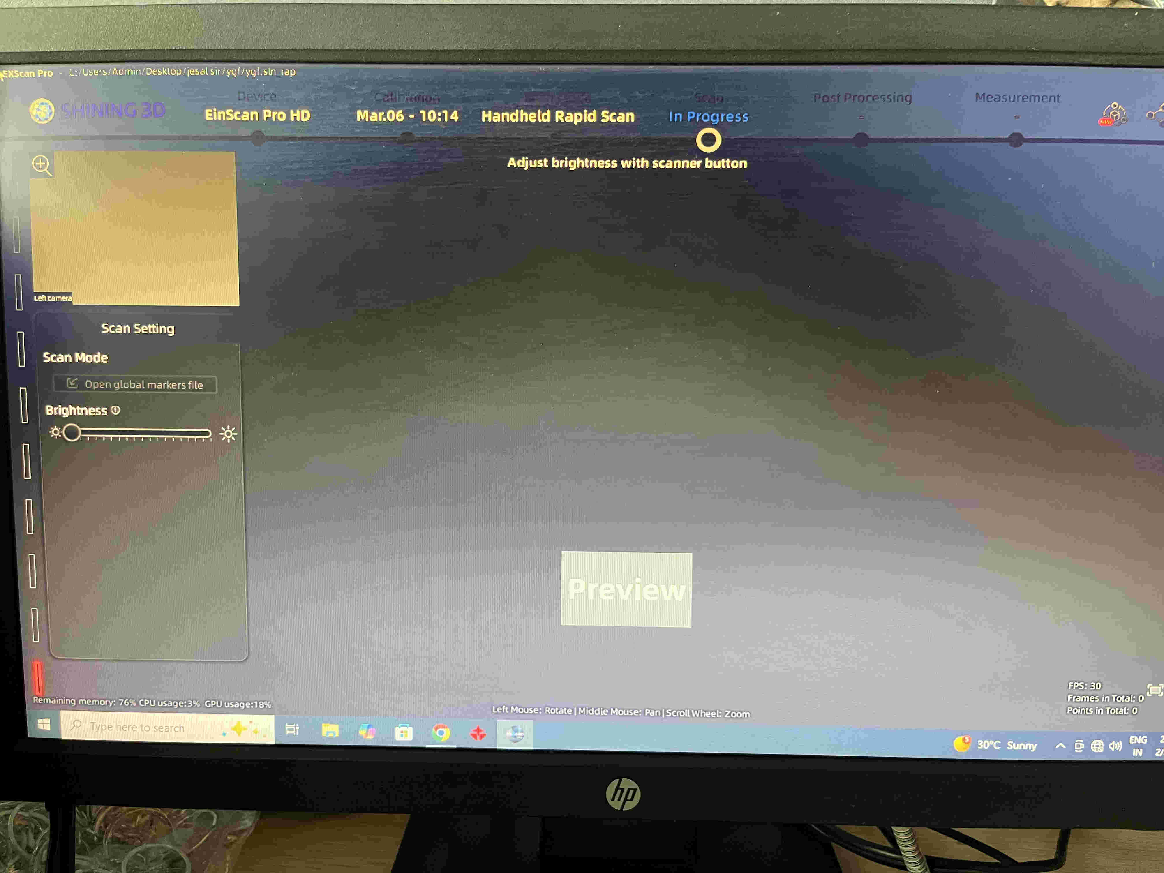Unfortunately because of some techincial issue, the Einscan wasnt feeding anything to the pc, even the preview window on the top left of the software was blank.