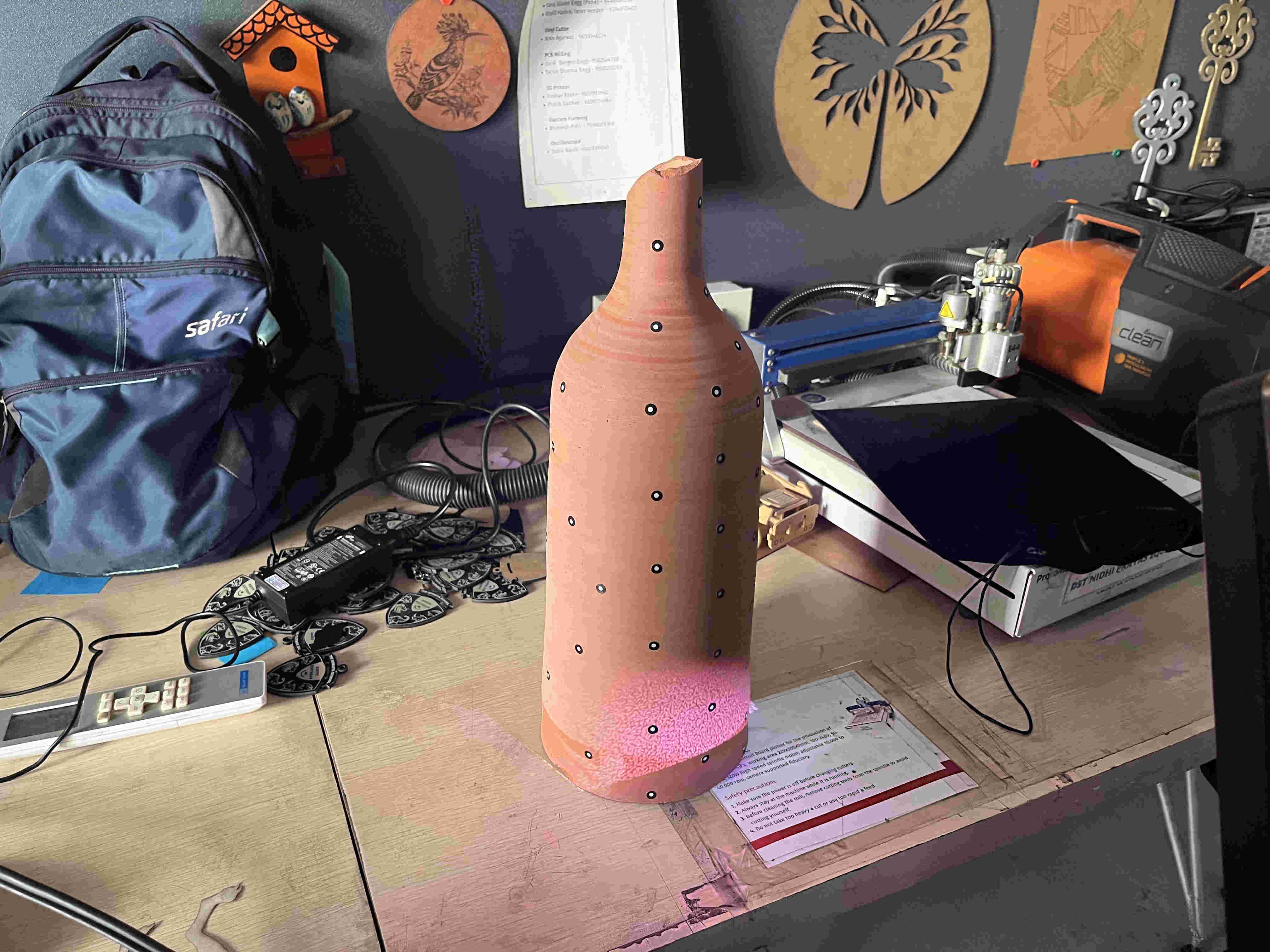 For starters we tried a pottery vase, lined it with dots and started scanning.