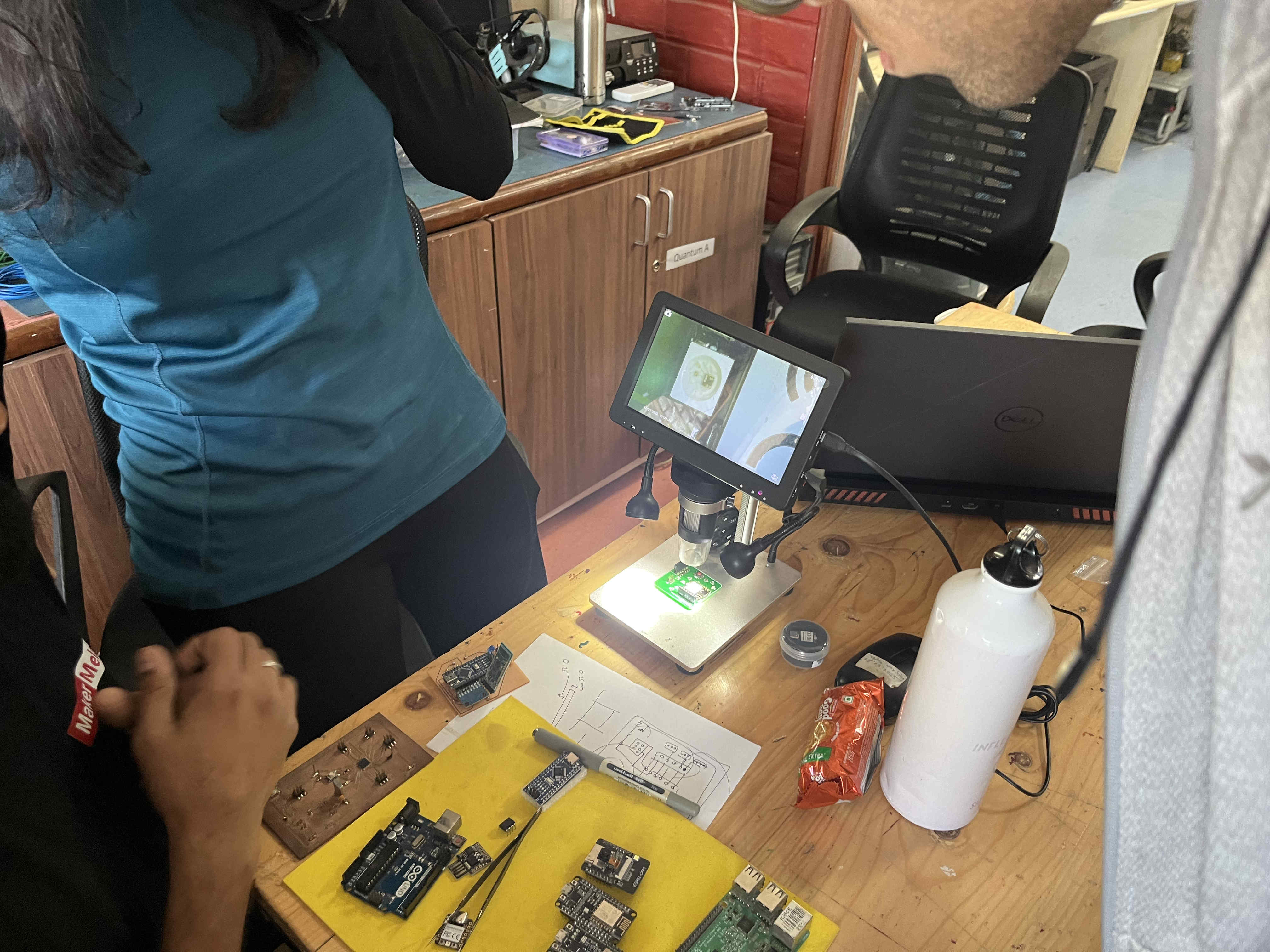 We took a look at the various controllers we had in house first.On the left you can also see Some i house designed and milled Arduino,s made using the same chips and only the nessecary outputs and inputs.Using out microscope to view finer and deeper details into LED'S, resistors and more