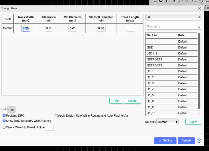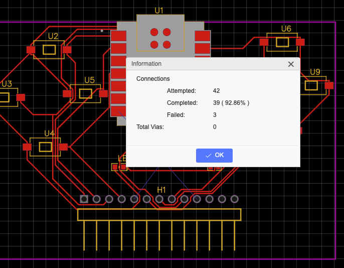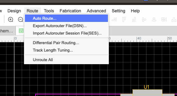 We can now autoroute our pcb Since i was doing a low fidelity not so complex pcb, i chose only top layer,
