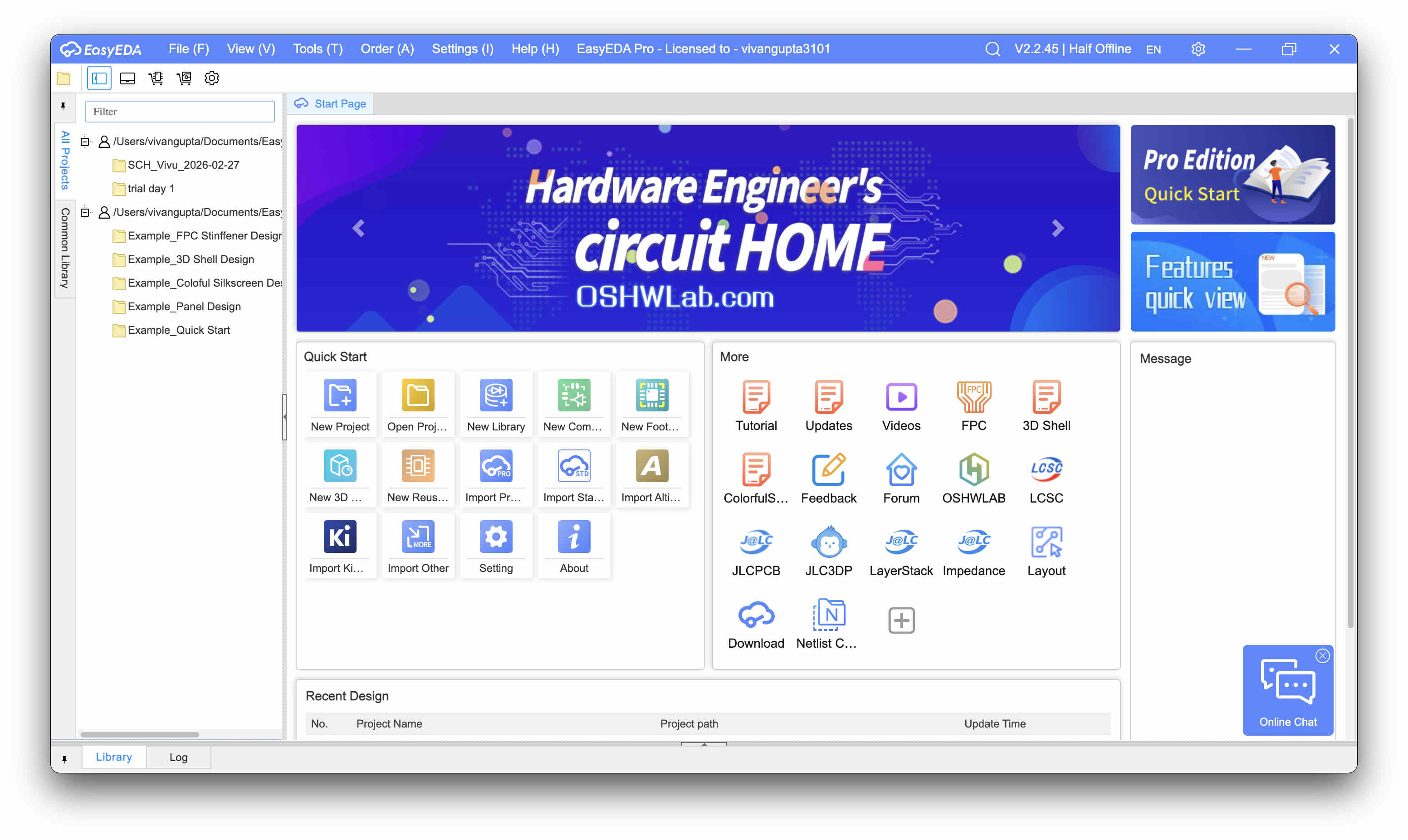 https://easyeda.com/page/downloadInstall Easy EDA using this link, pro or std version both are fine