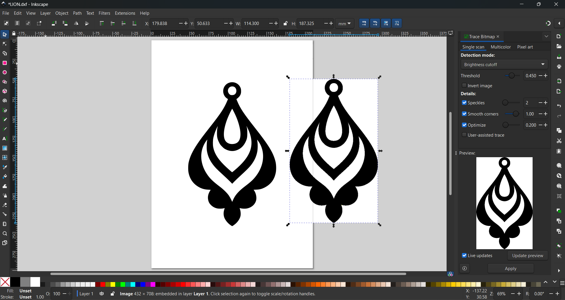 I used Inkscape to convert a raster image into a vector format. This process is important because vector files are scalable and suitable for digital fabrication processes such as laser cutting and CNC machining.