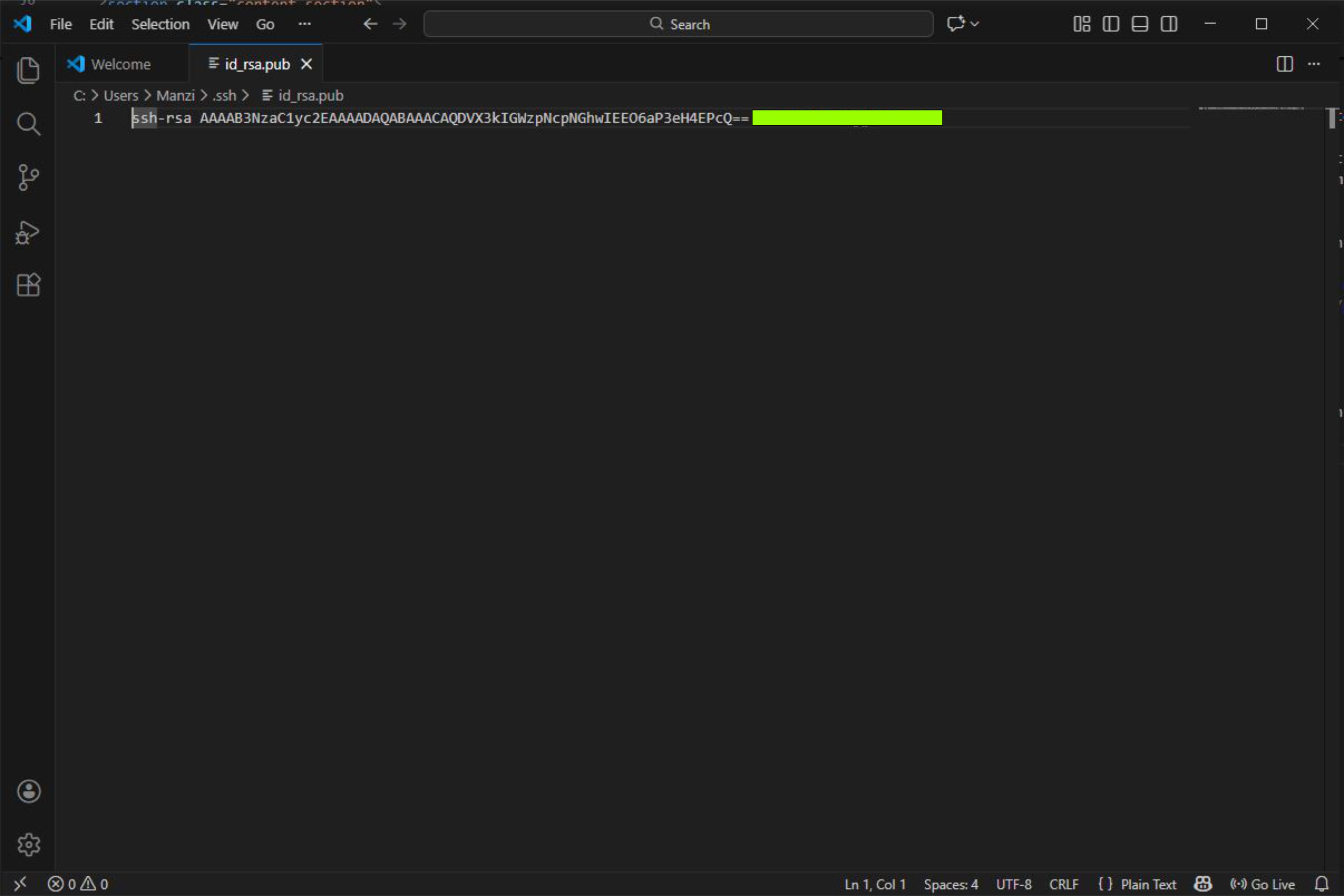 After get the ssh, git will be stored in folder "user/ssh" and open the public key with code editor