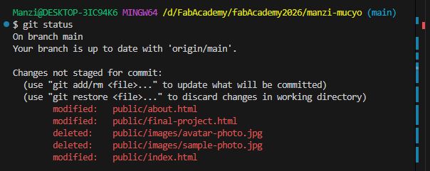 Finally, I ran git push to upload my changes to the Git repository.