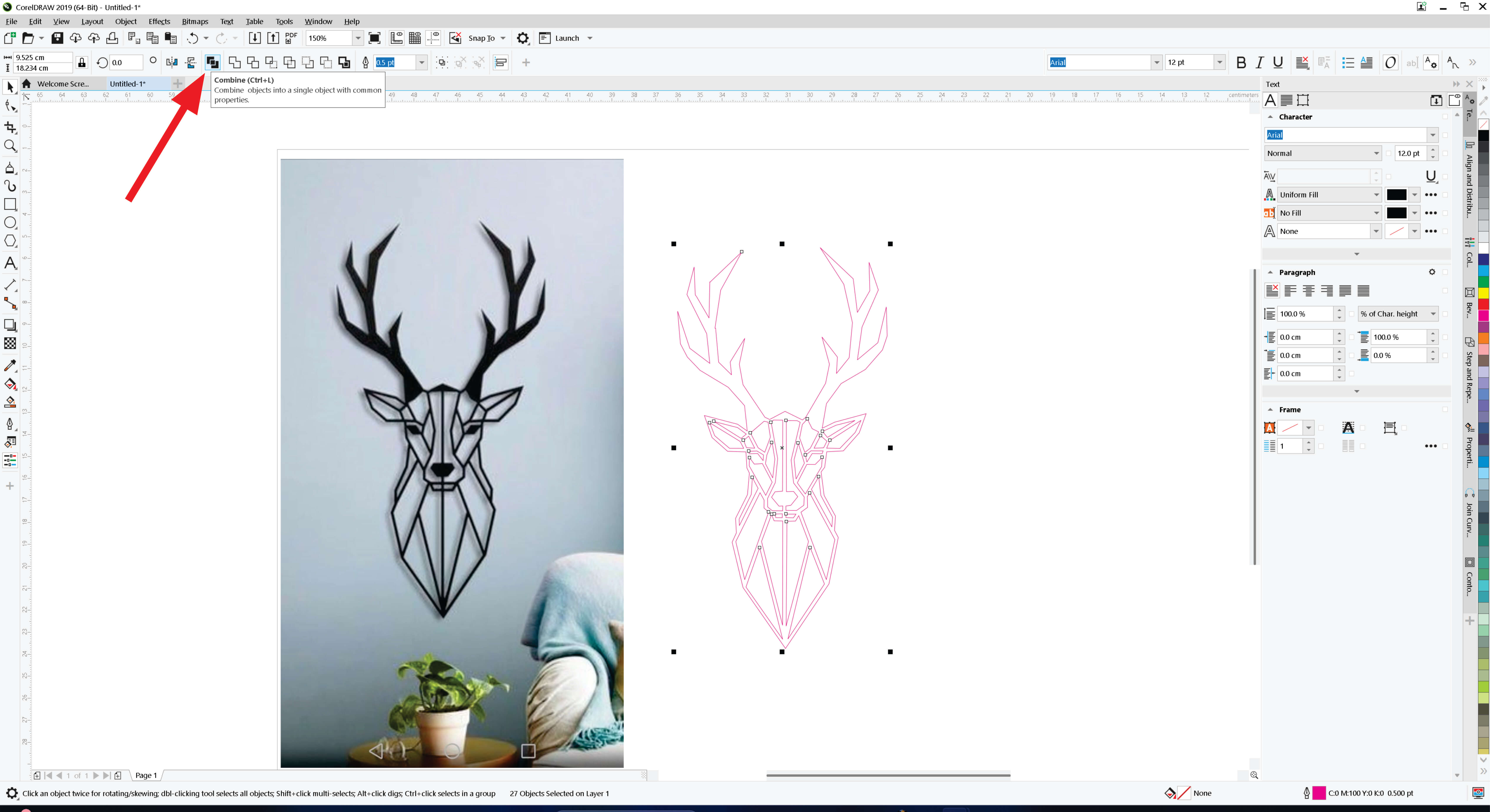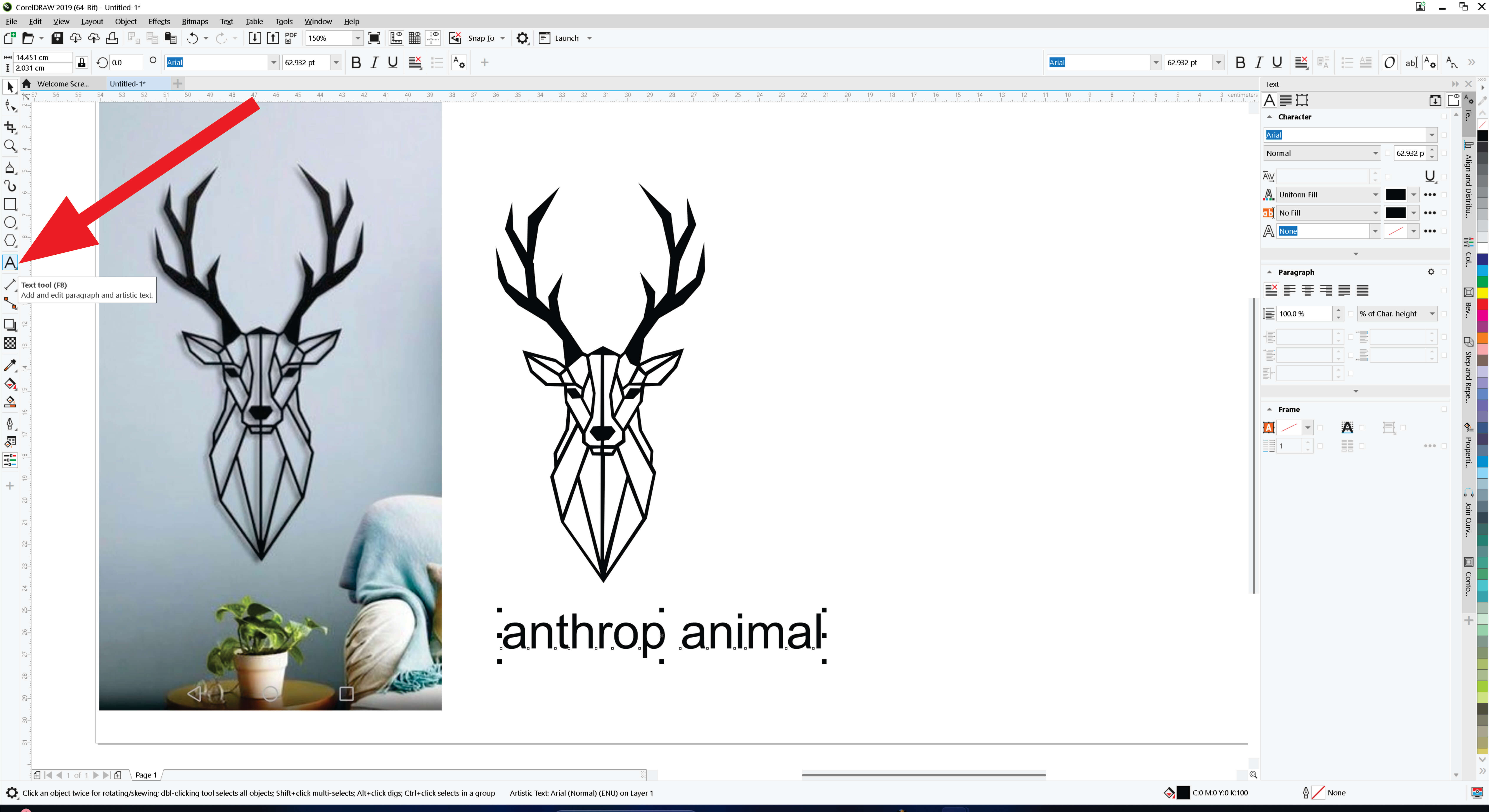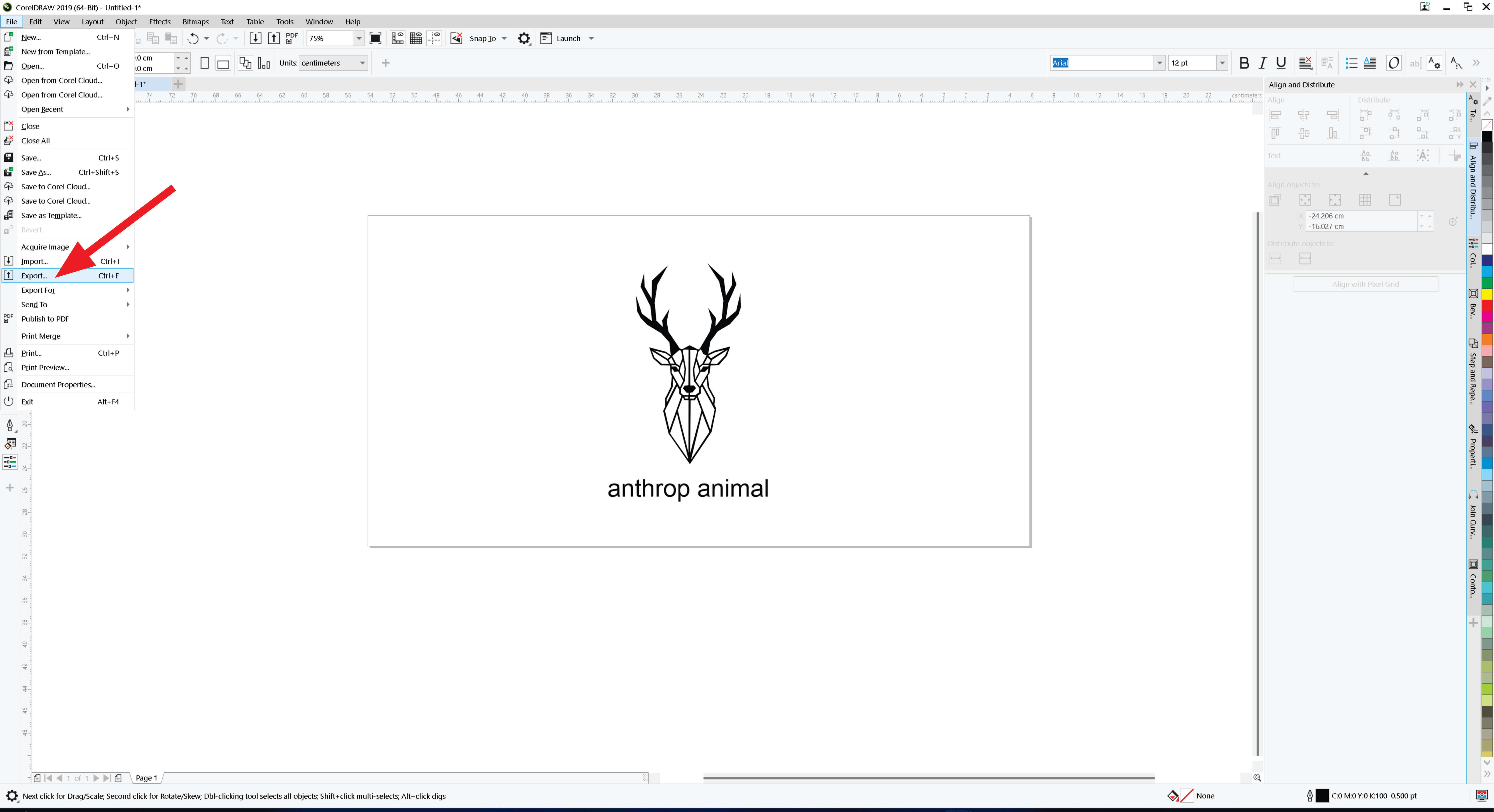 Next, I aligned artwork and text (center alignment) with align and distribute feature