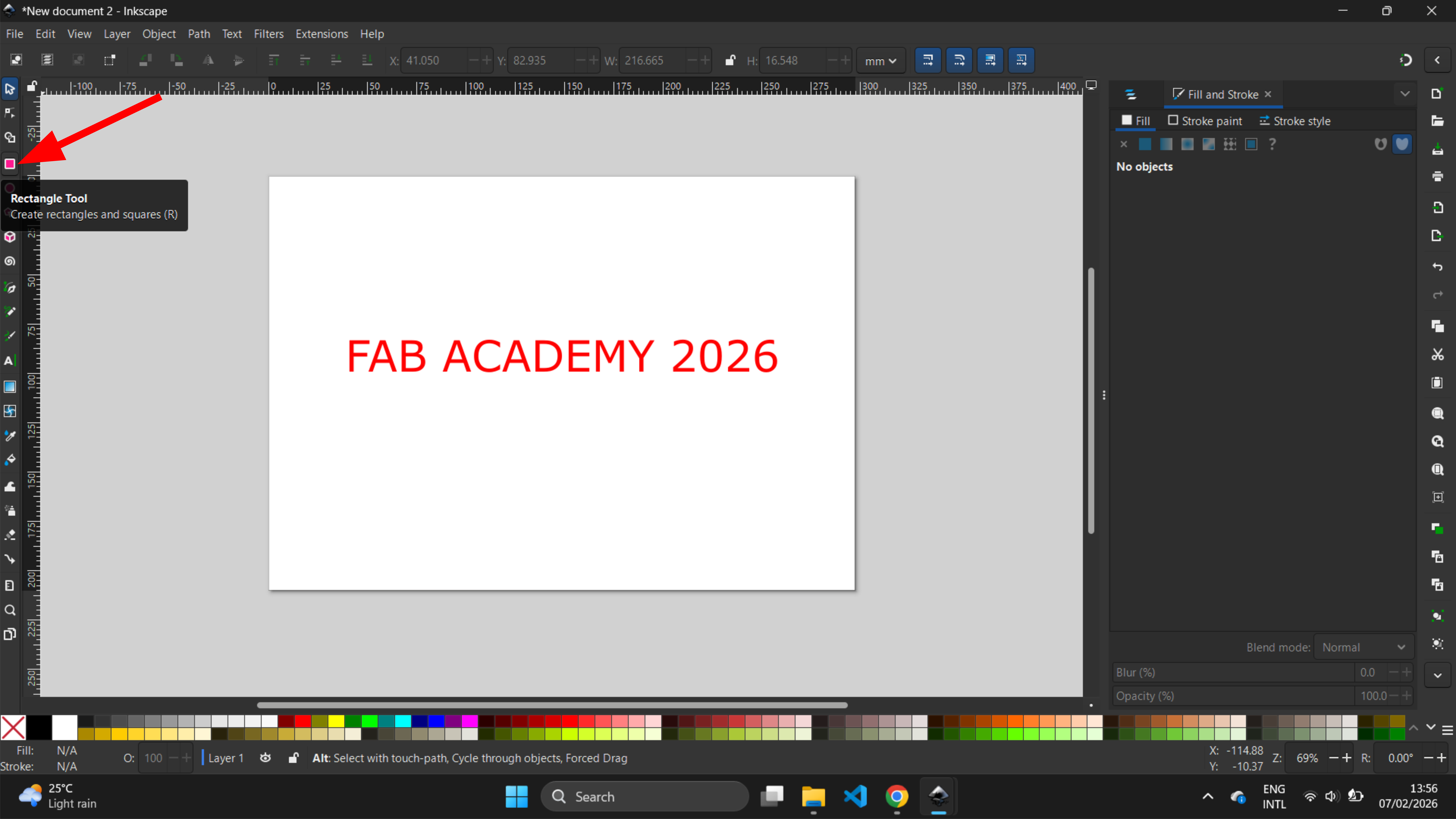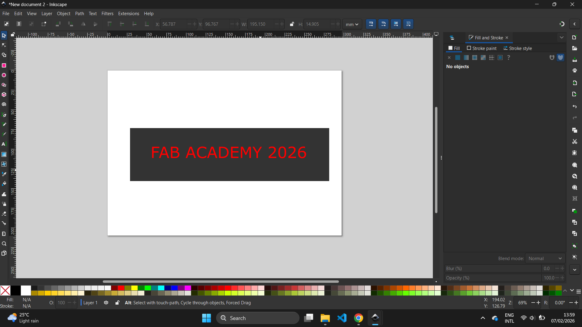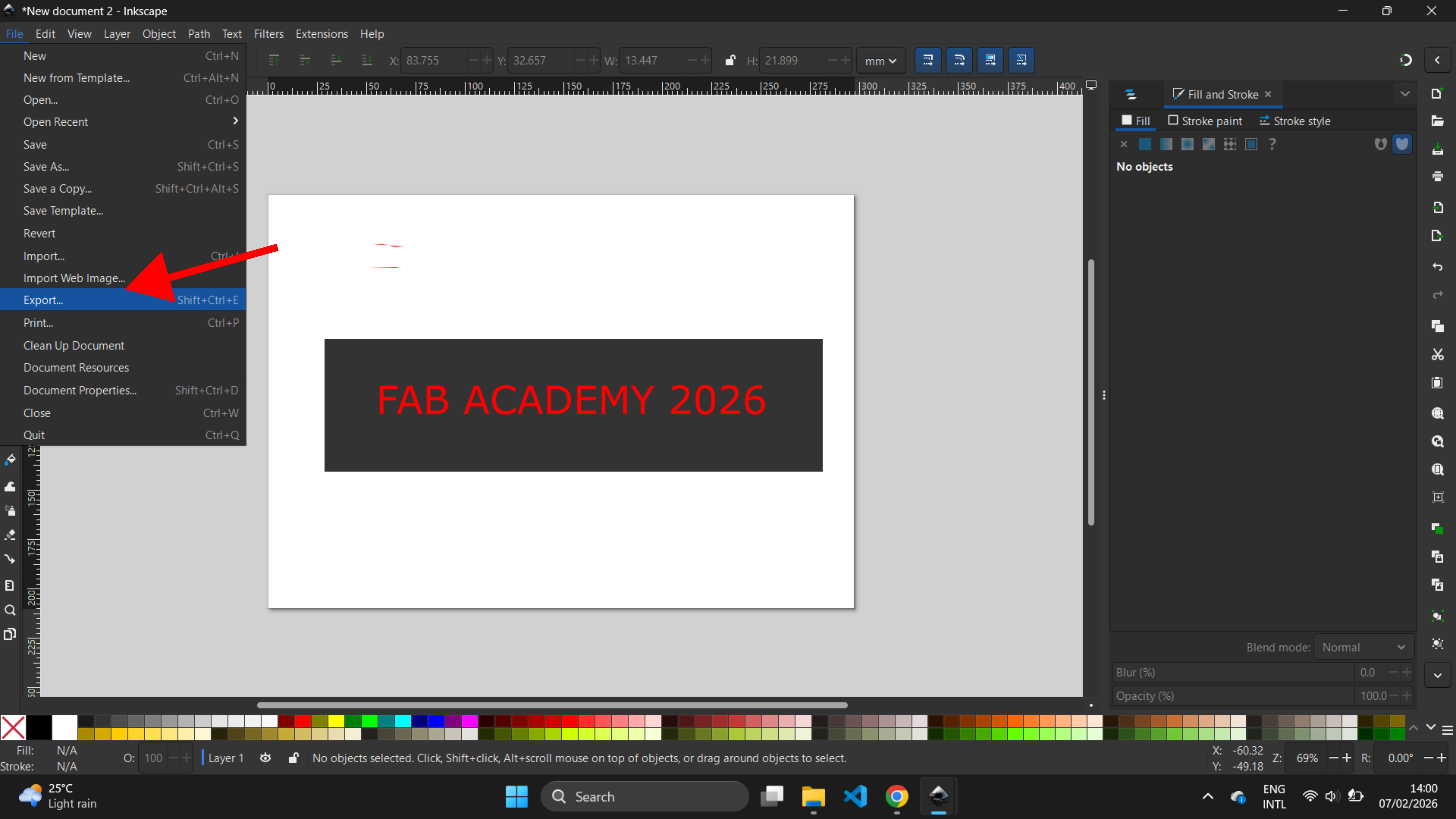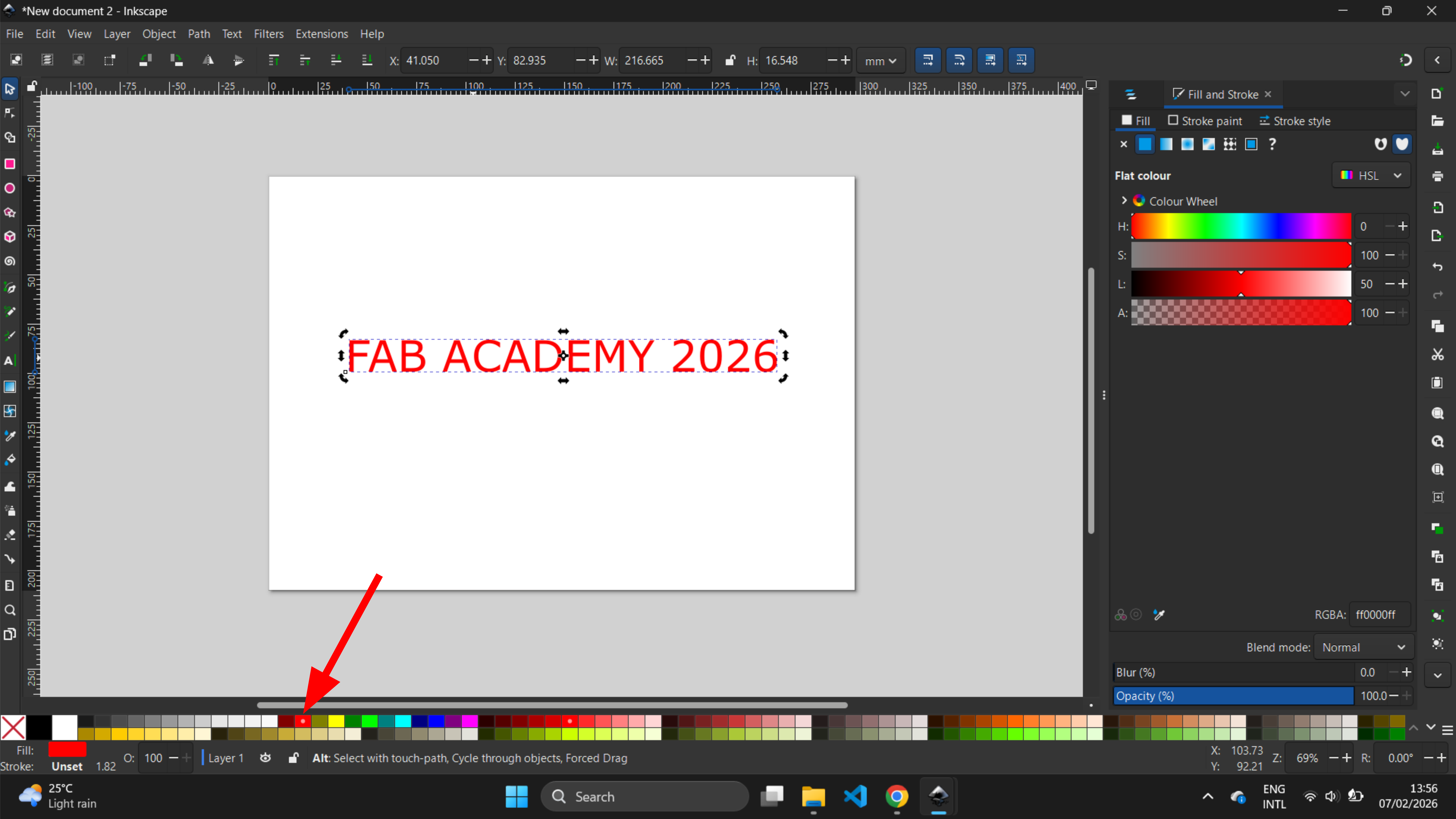 I used text tool to add text texts “FAB ACADEMY 2026’” and change color into red