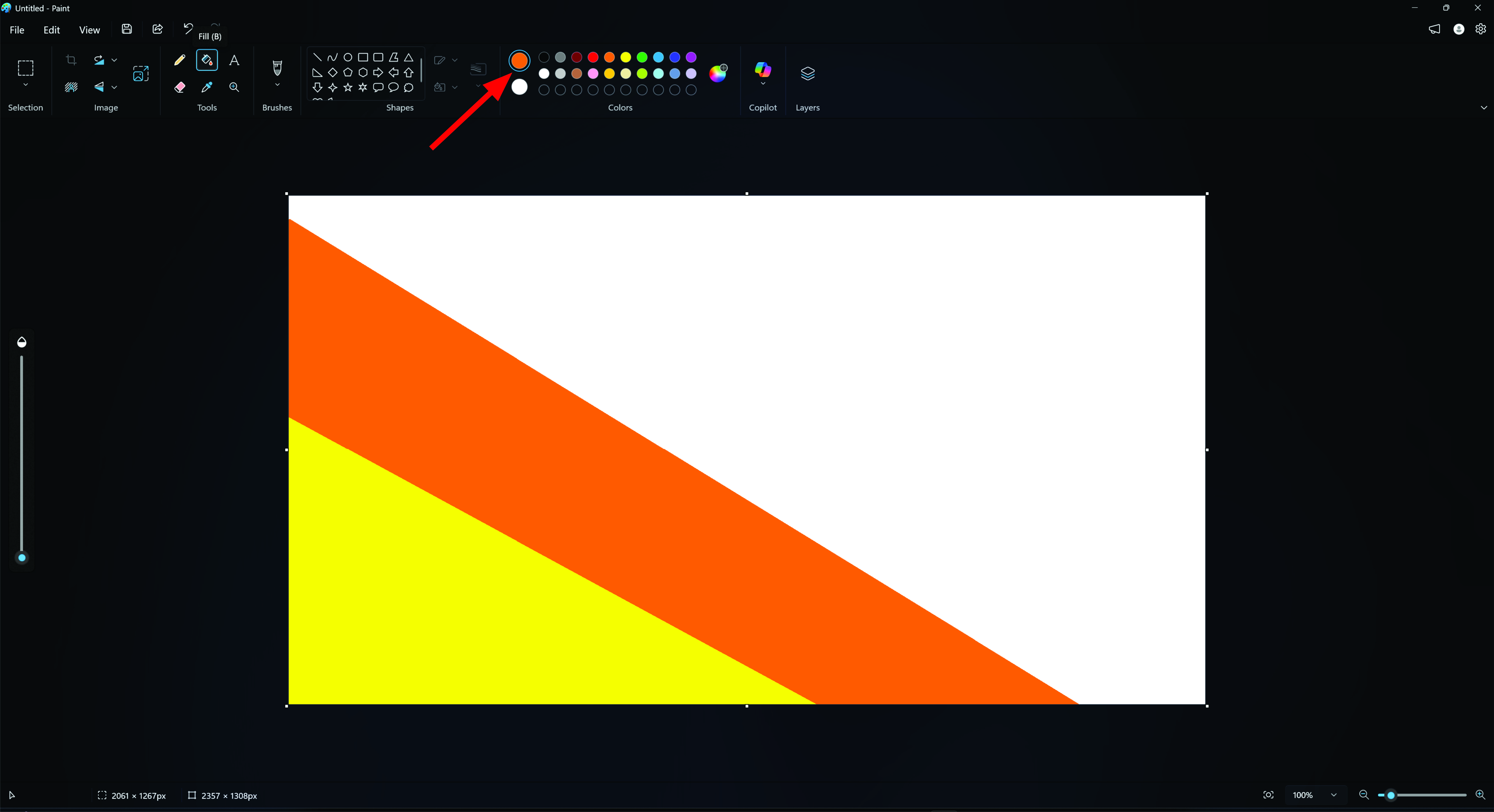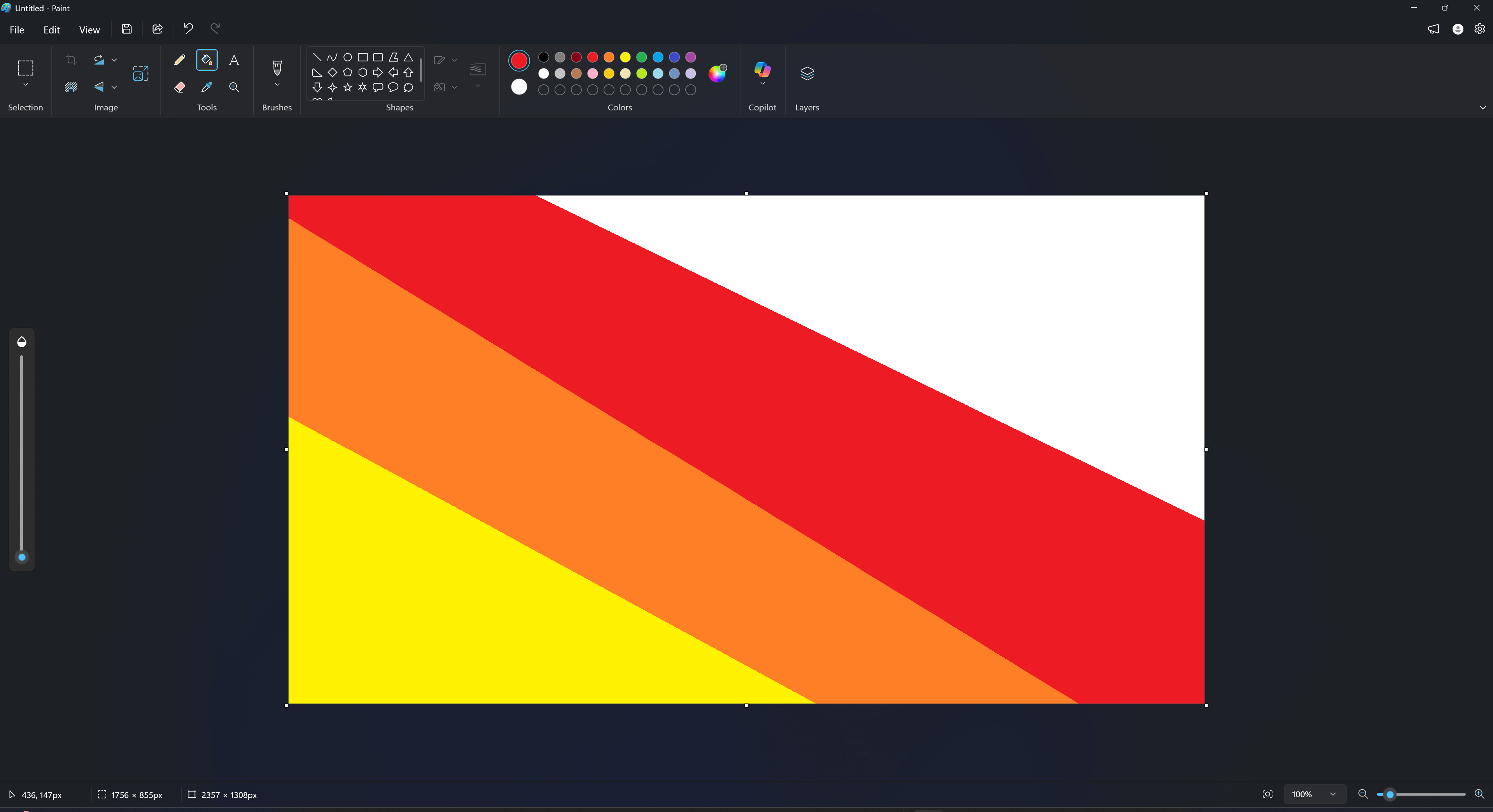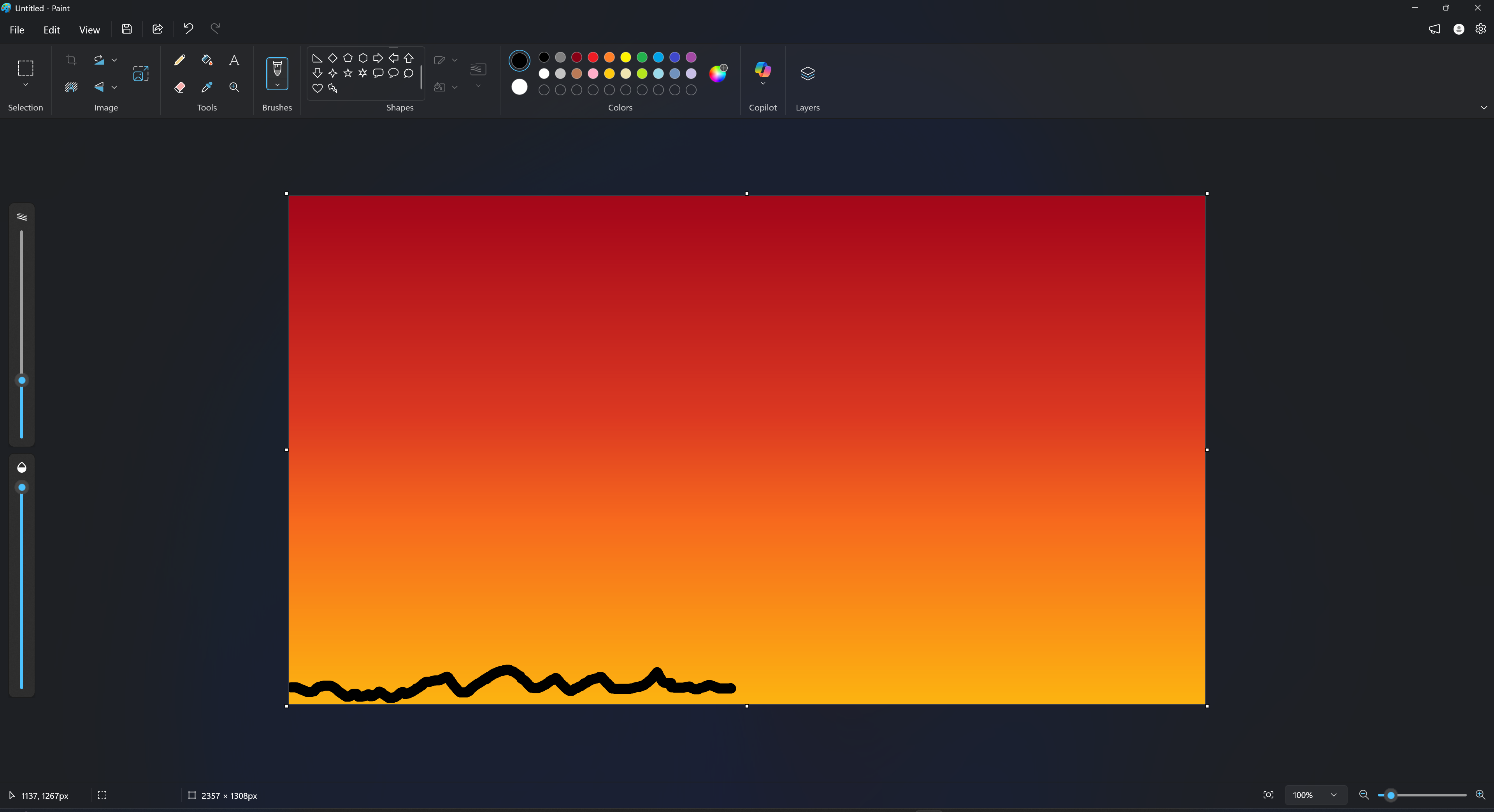 I am going to create a sunset design First, the background was created using the fill tool with warm colors such as orange, yellow, and red to represent the sunset sky