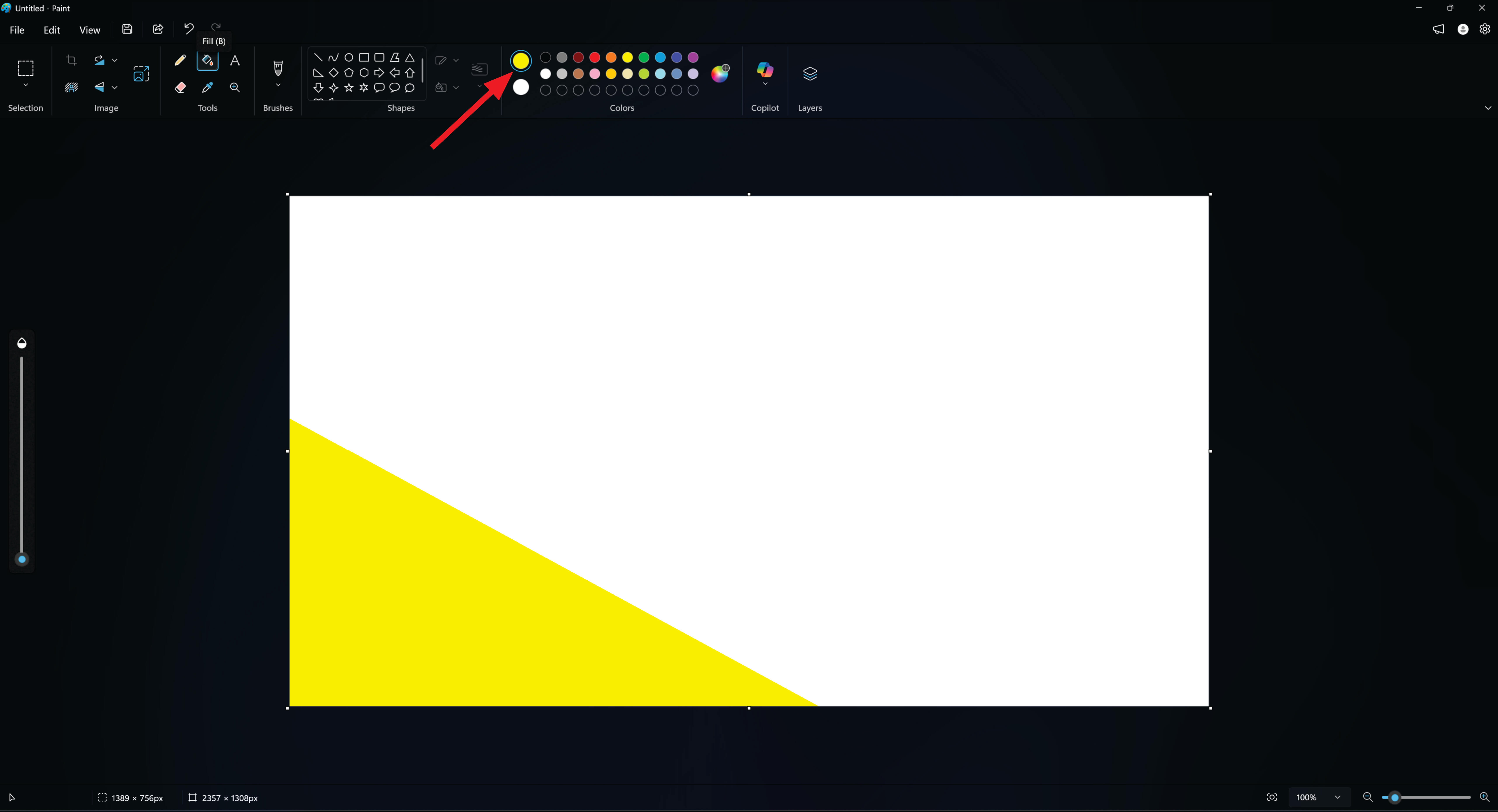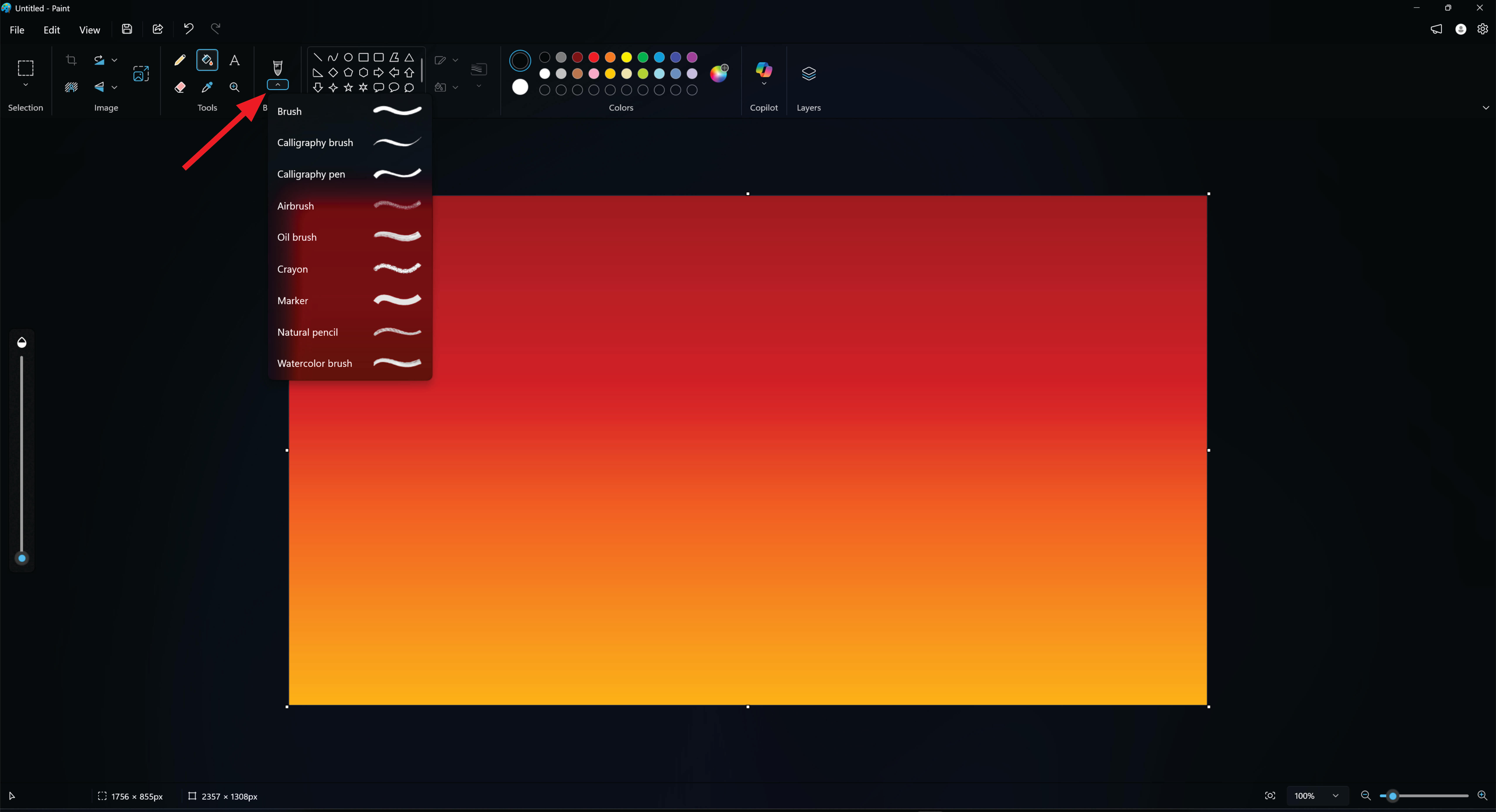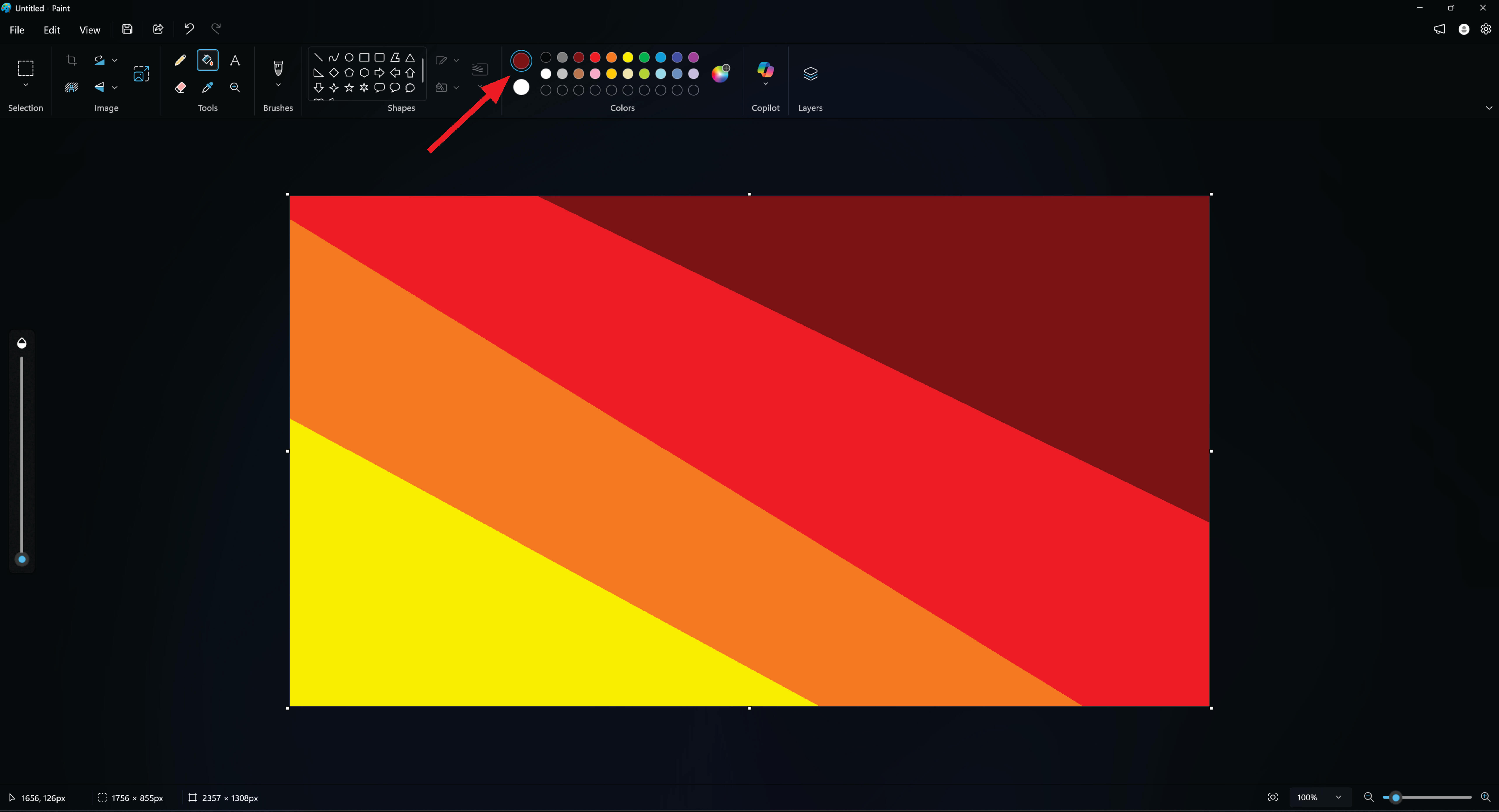 I am going to create a sunset design First, the background was created using the fill tool with warm colors such as orange, yellow, and red to represent the sunset sky