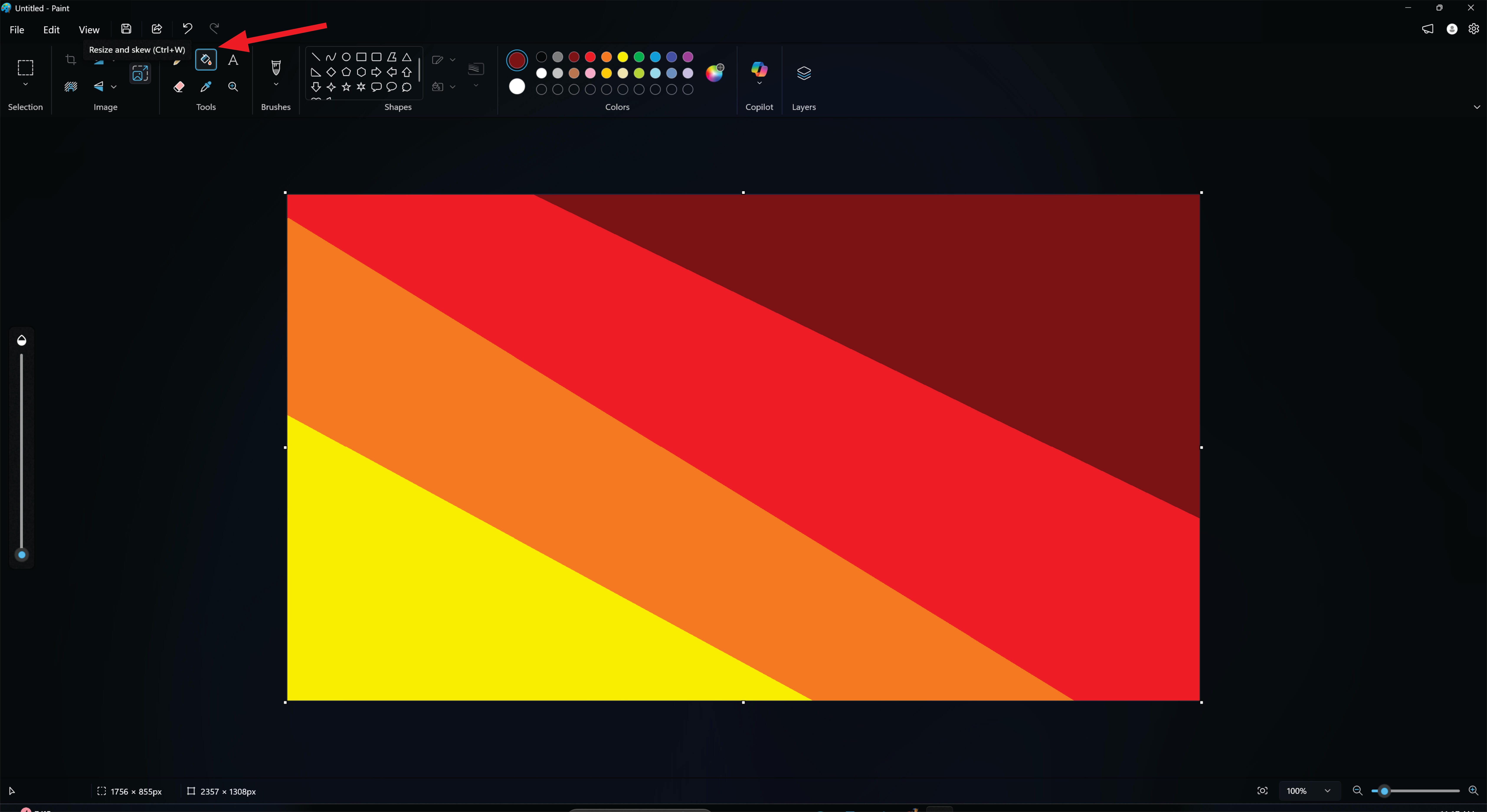 The next step involves modifying the sunset background using the resize and skew tools to enhance its composition.