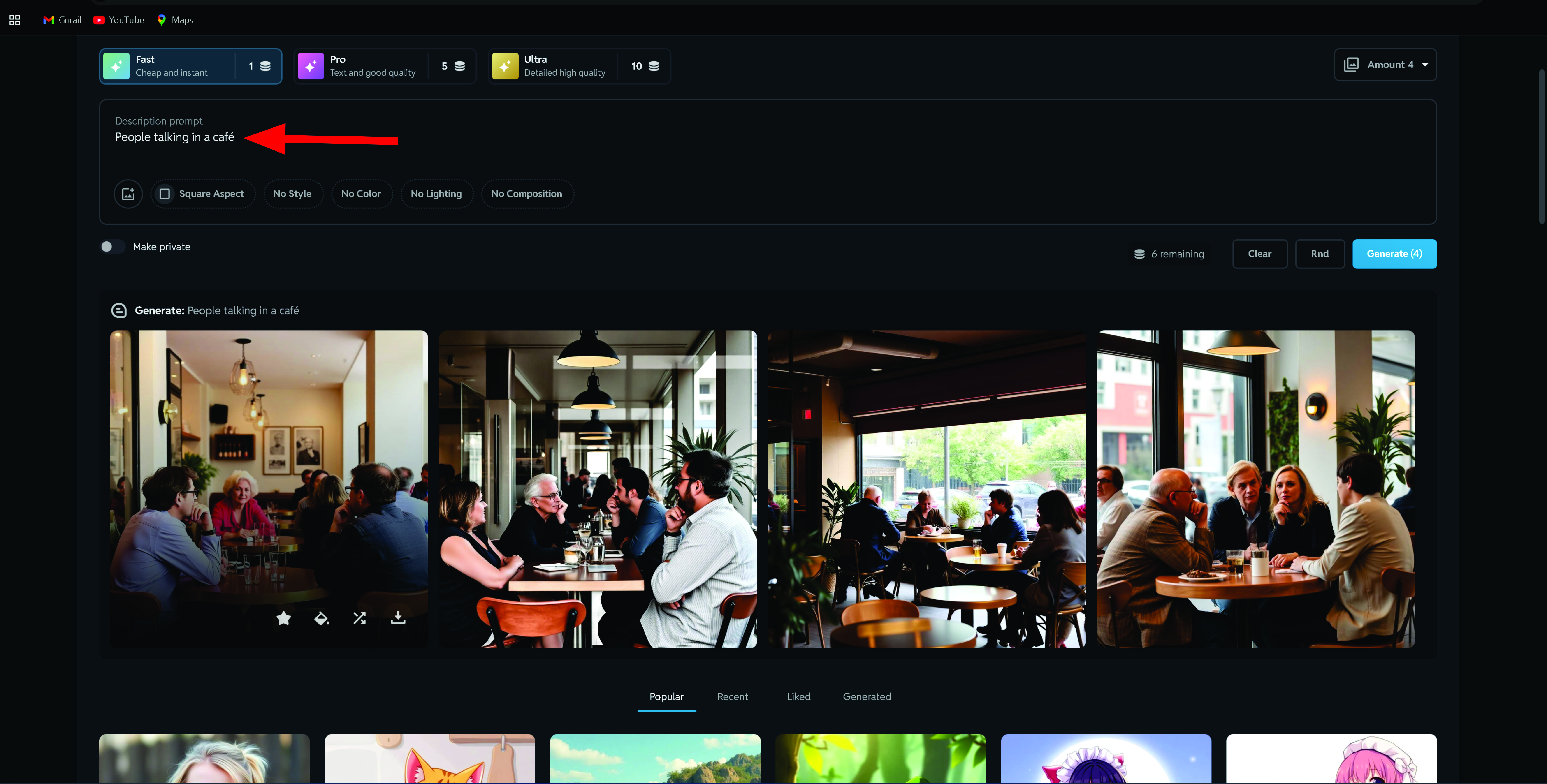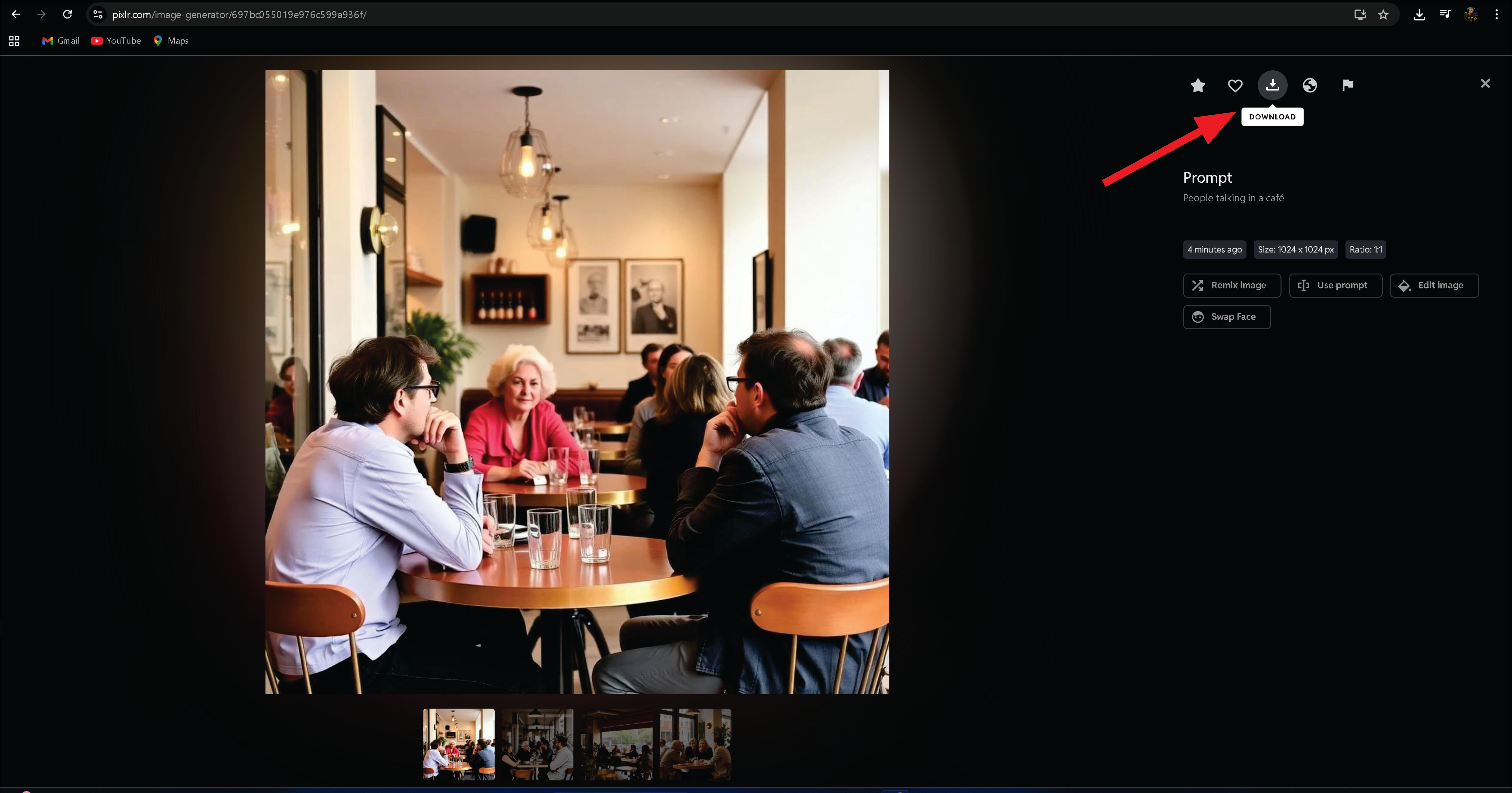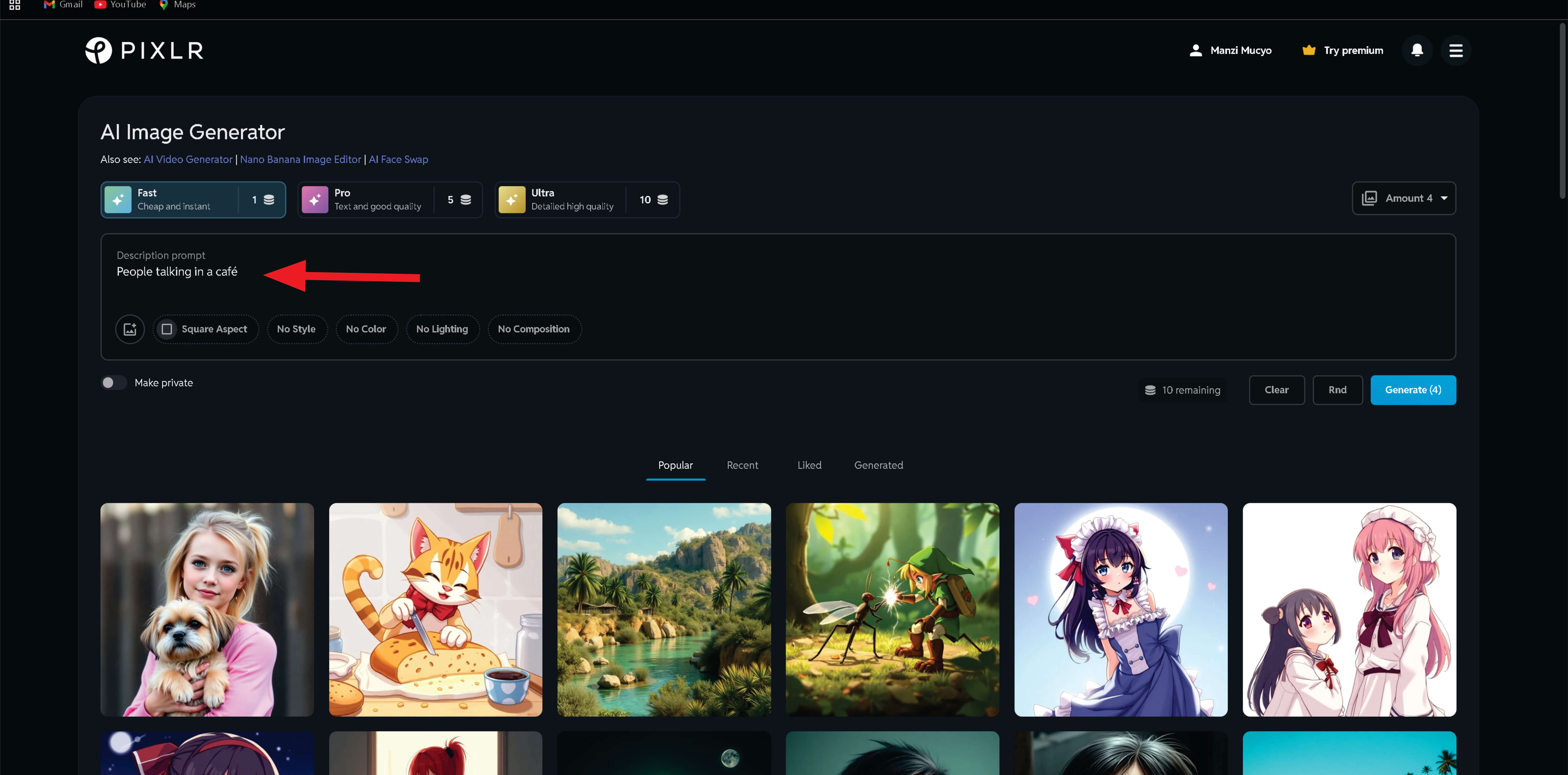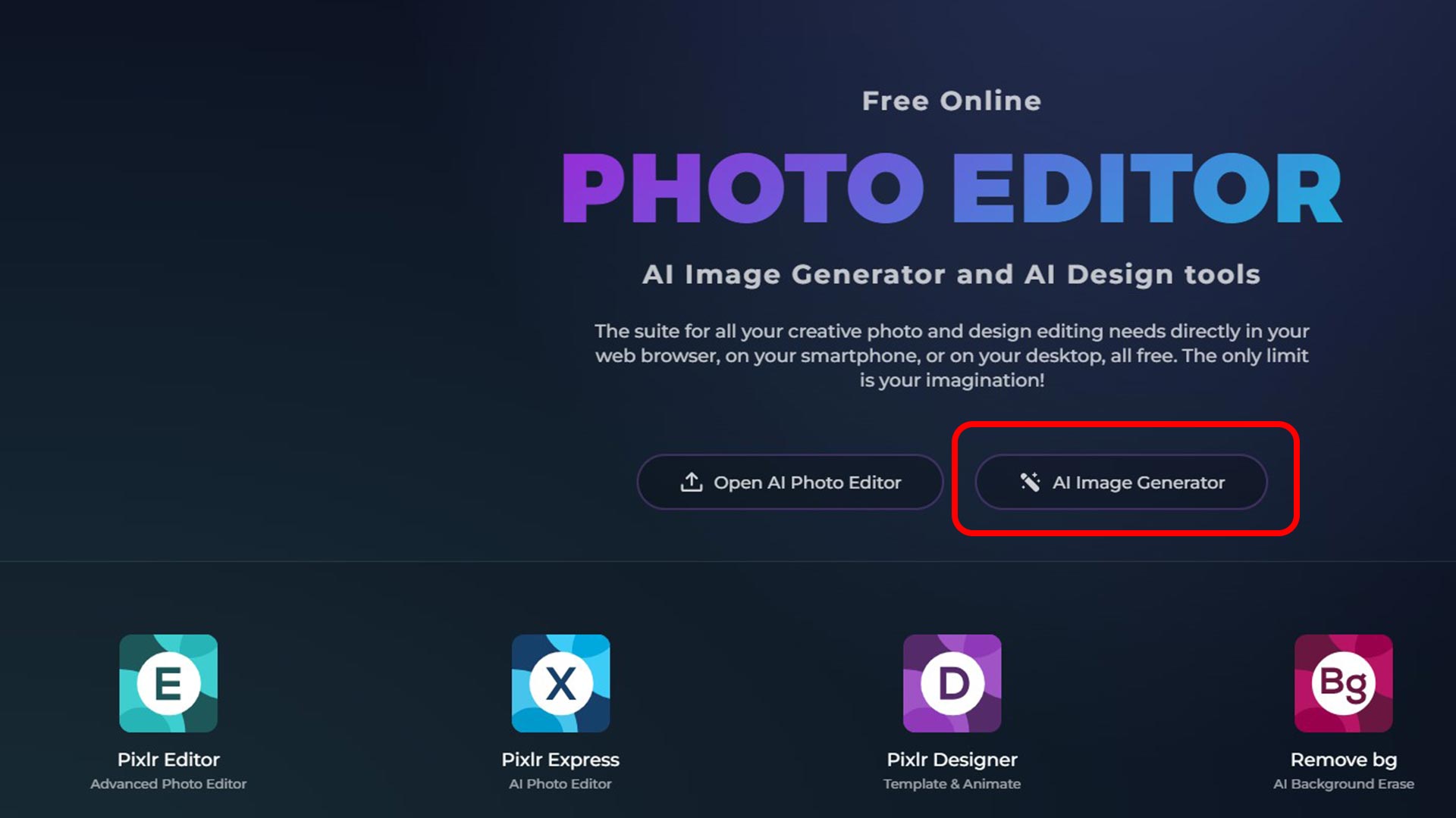 With Pixlr, you can generate images by using text prompts. I created a new file and opened the AI Image Generator, as highlighted below