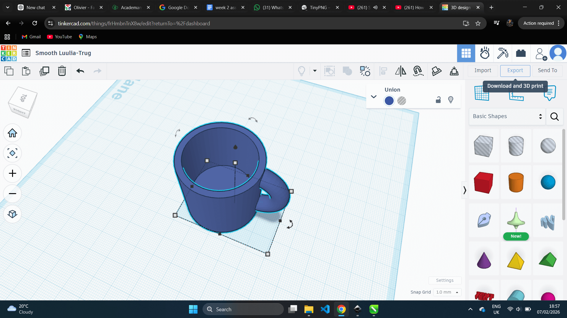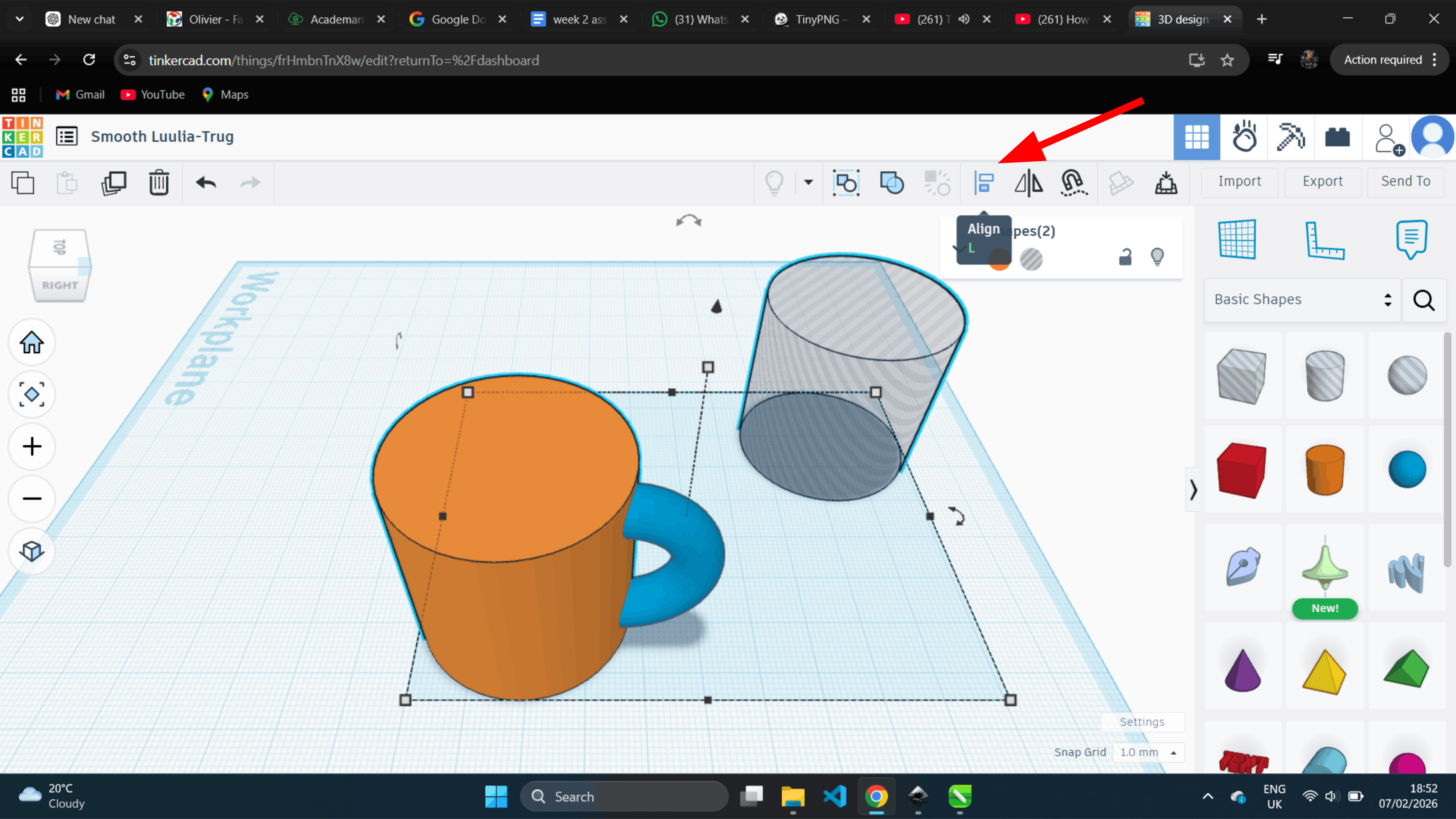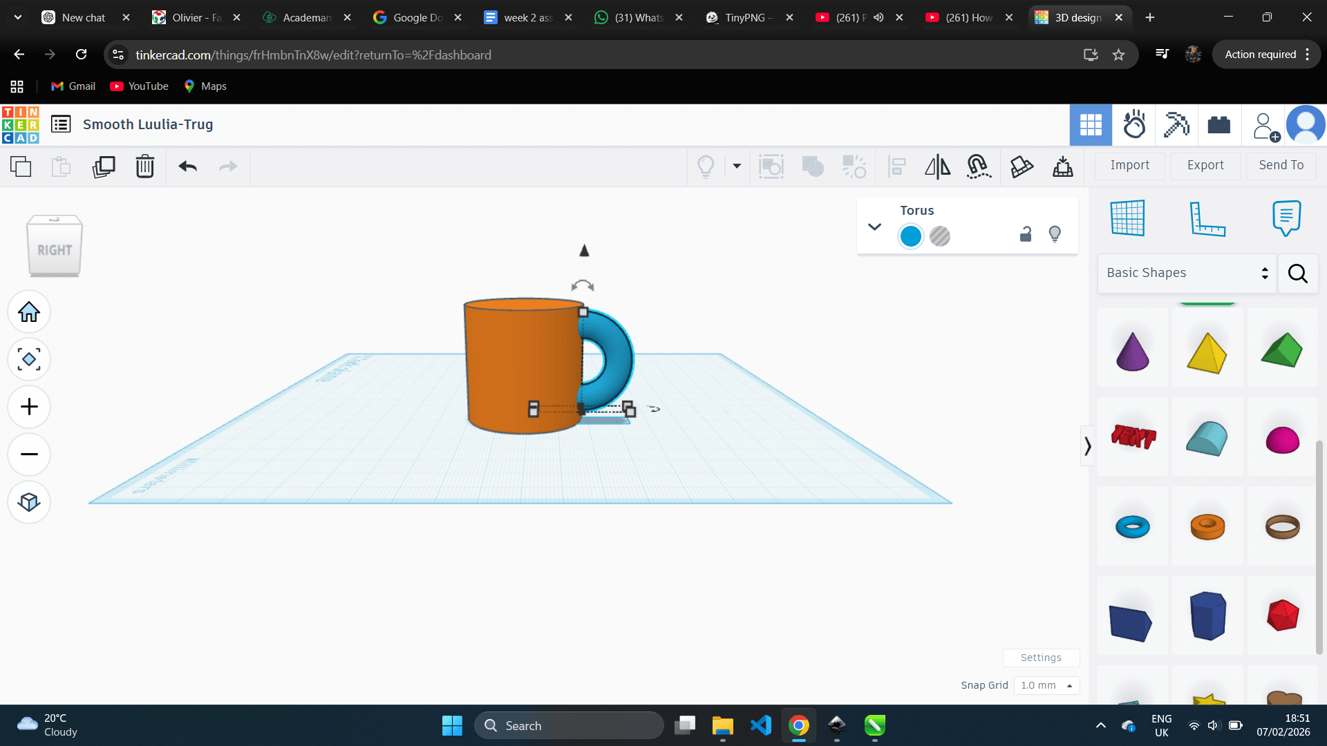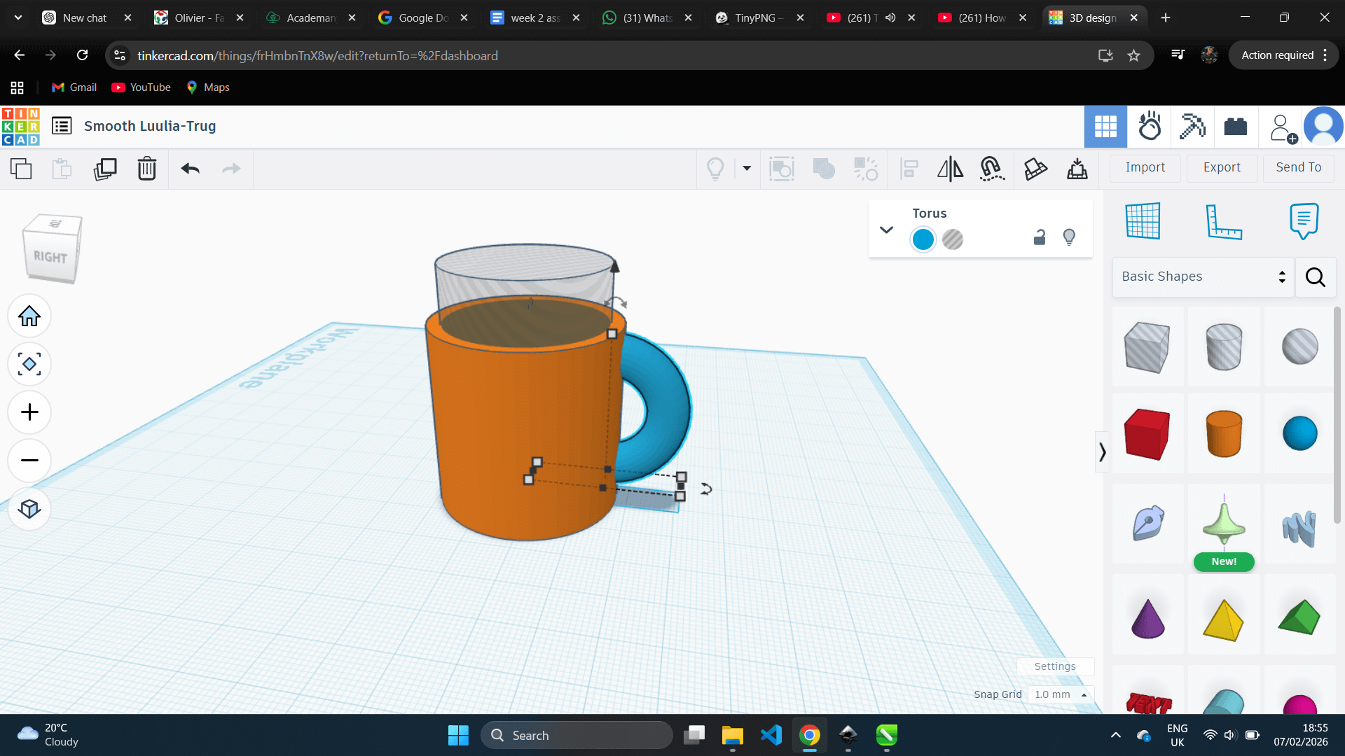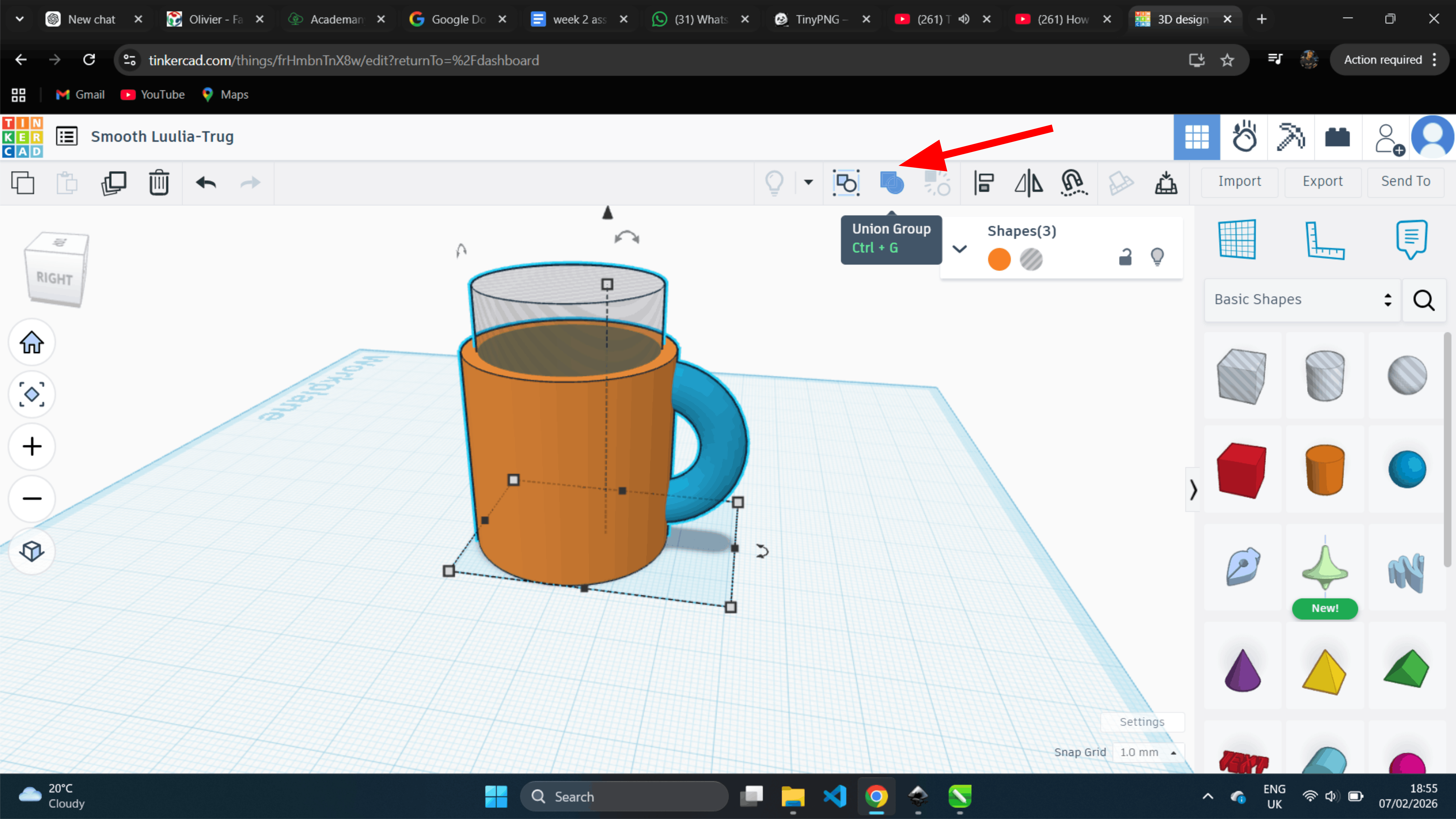 I learned how to create 3D objects in Tinkercad by using basic shapes, scaling, rotating, aligning, hollowing, grouping, coloring