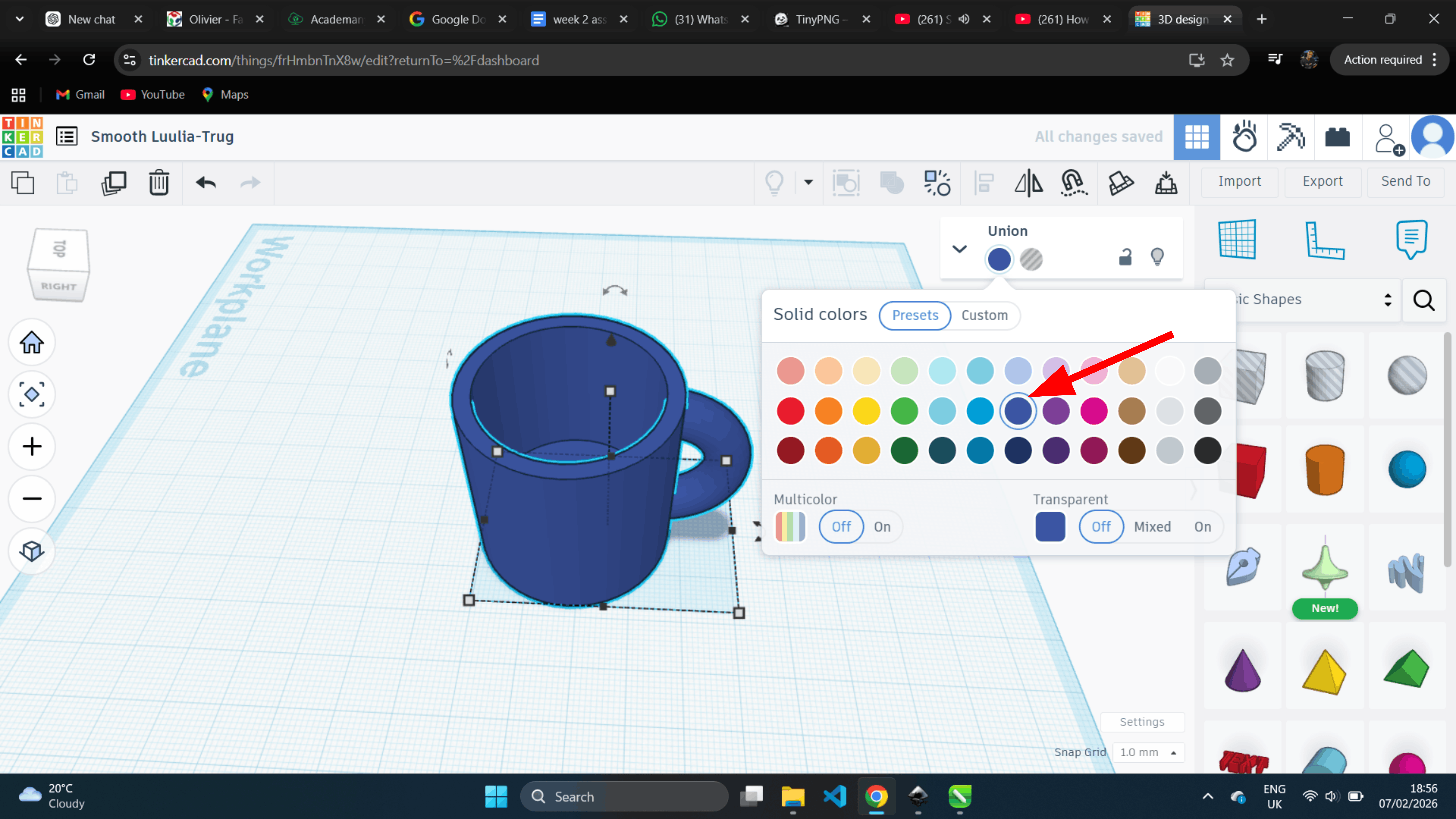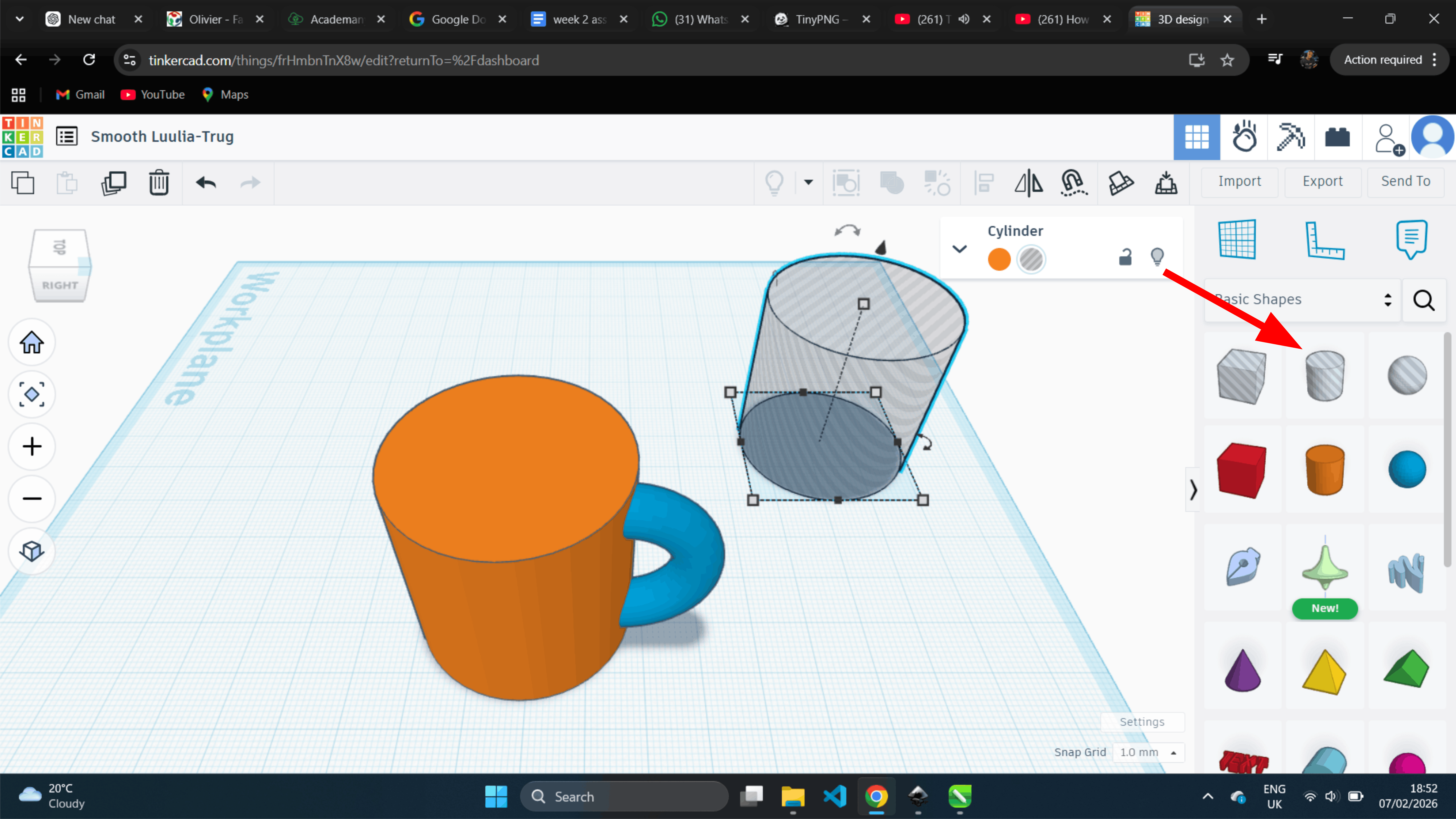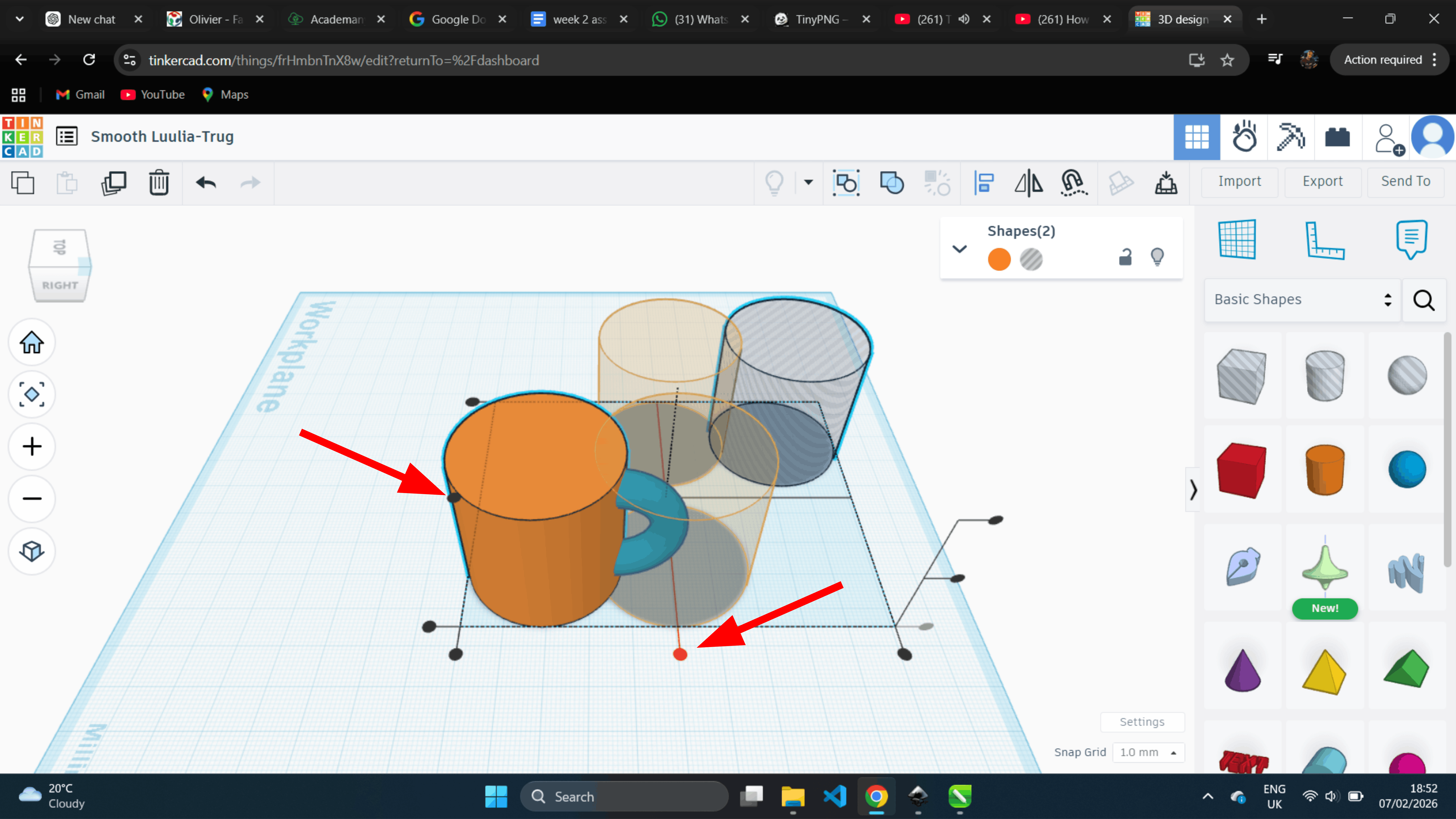 After placing the object on the workplane, I was able to move it to different positions by dragging it I use cylinder to make a cup