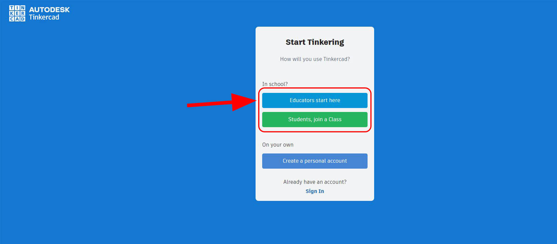 I chose Educator, as highlighted.If you choose Student, it will prompt you to enter a class code.At times, you may also see the Maker option. You can choose it as well; it works the same way as Educator