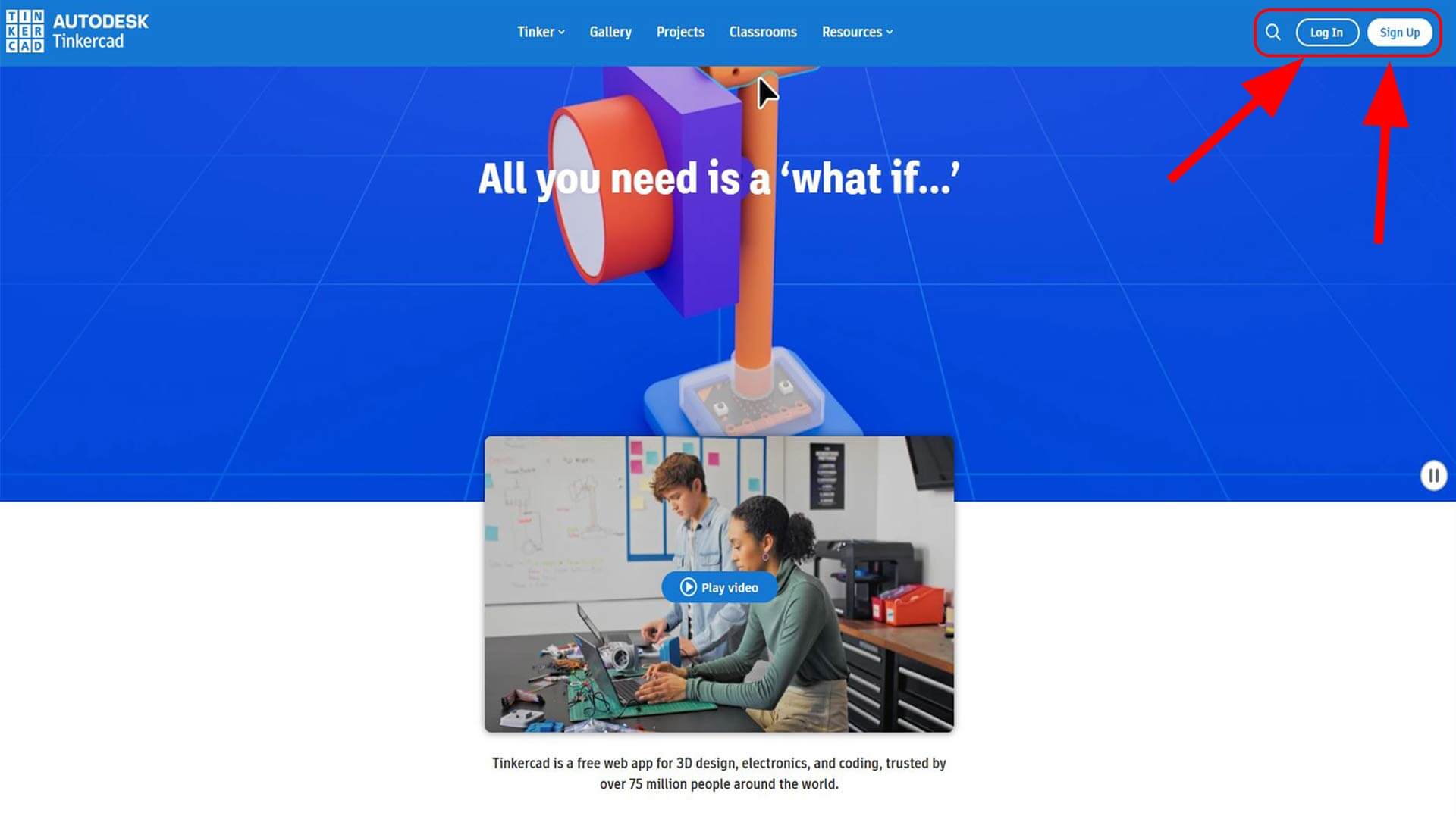 Tinkercad is a free online tool used for creating 3D designs, especially for beginners. It was created by Autodesk and is easy to learn. o use Tinkercad, first create an account on the Tinkercad website. If you already have an Autodesk account, you can simply choose Log In instead, as highlighted in the image below.