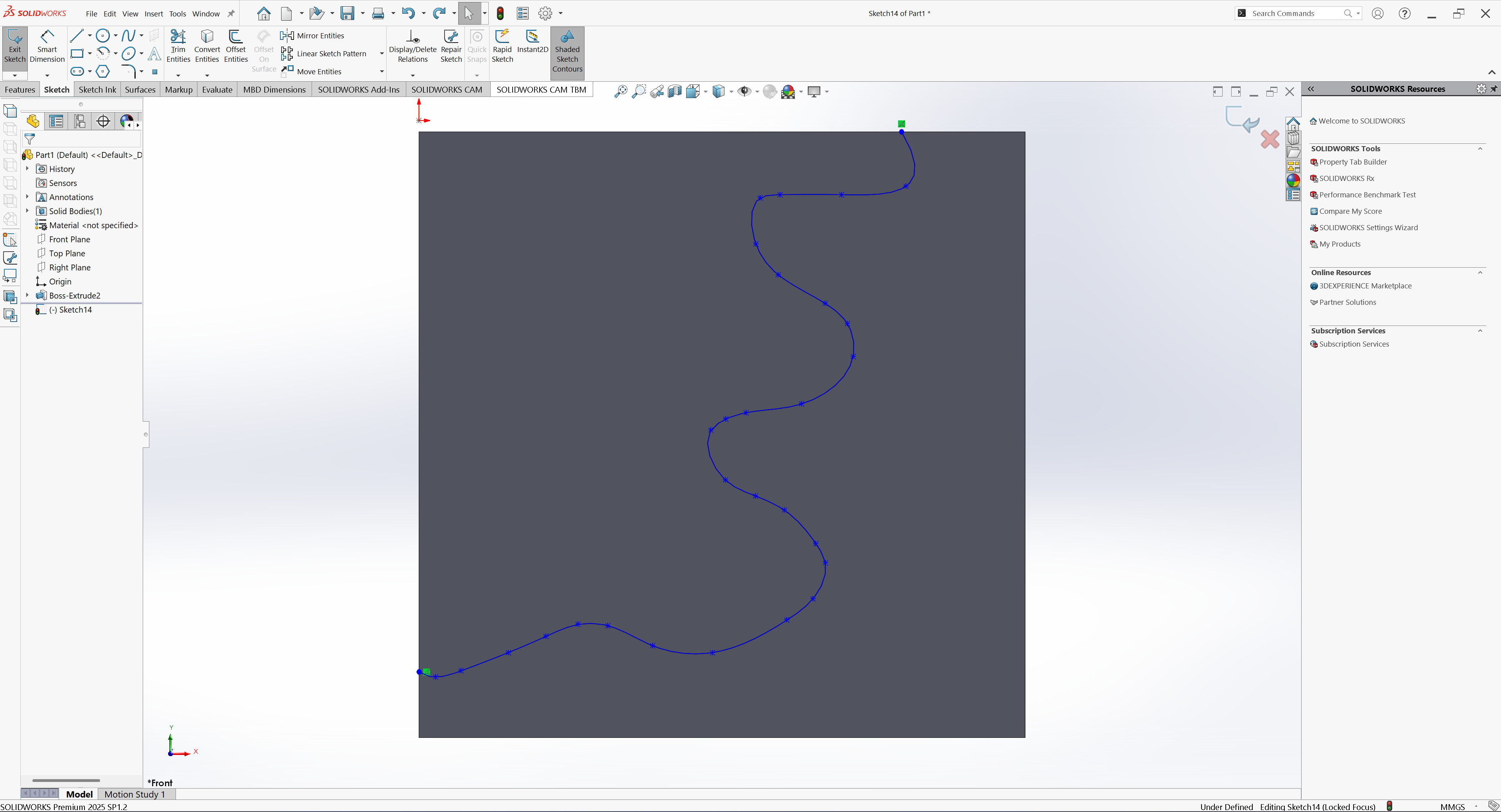 After creating the cube, I created the new sketch on the same Front Plane that was used to sketch the cube line that would serve as the center path for the pipe passing through the cube
