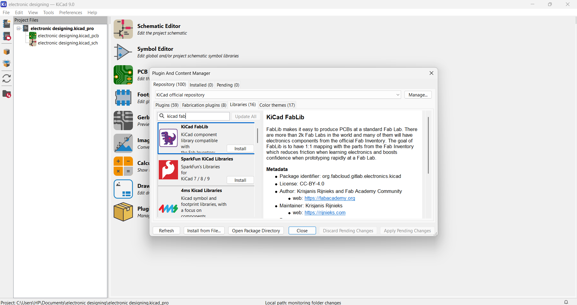 Choose fab KiCad library and click install