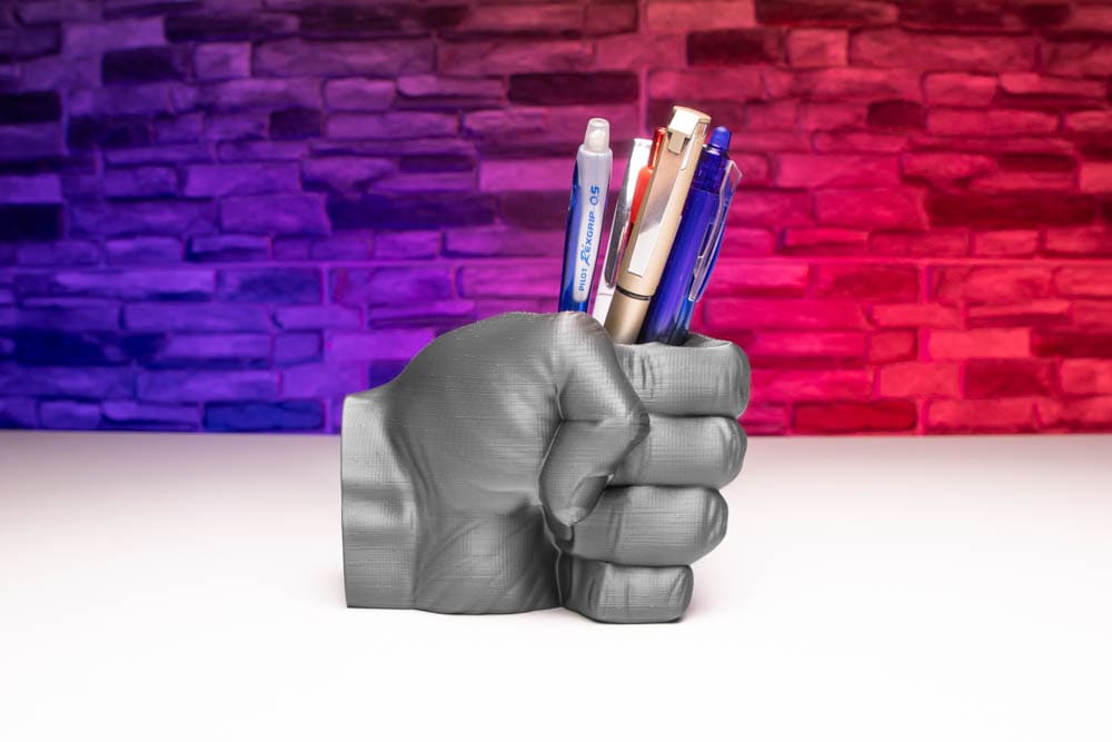And I wanted to print a pen holder by scanning my hand, inspired by this photo.
