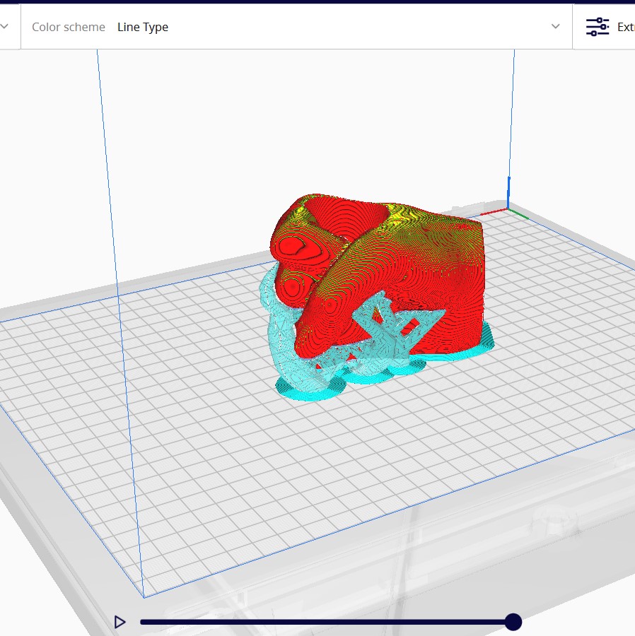 After calibration, I prepared the model for printing in Ultimaker Cura by assigning different parts of the model to different extruders based on the colors I wanted to use.