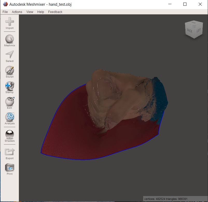 To work with the scan file, I downloaded Meshmixer from this link. The Artec software exports three files: