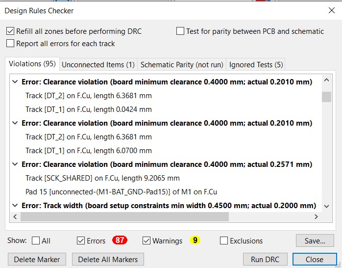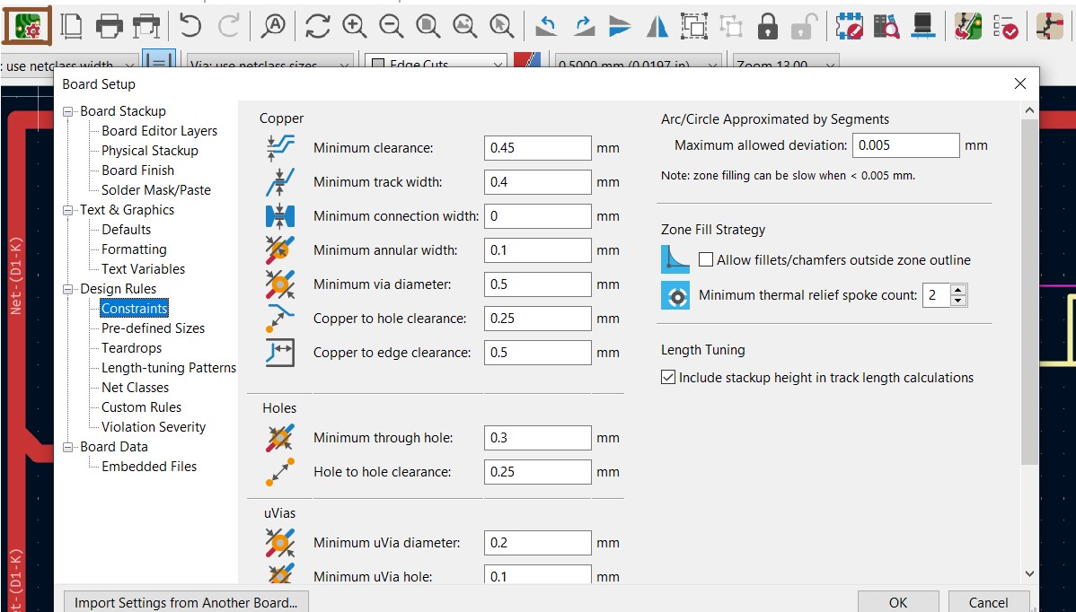 I focused on minimum PCB clearance and minimum trace width because they are essential for PCB functionality and manufacturability.
