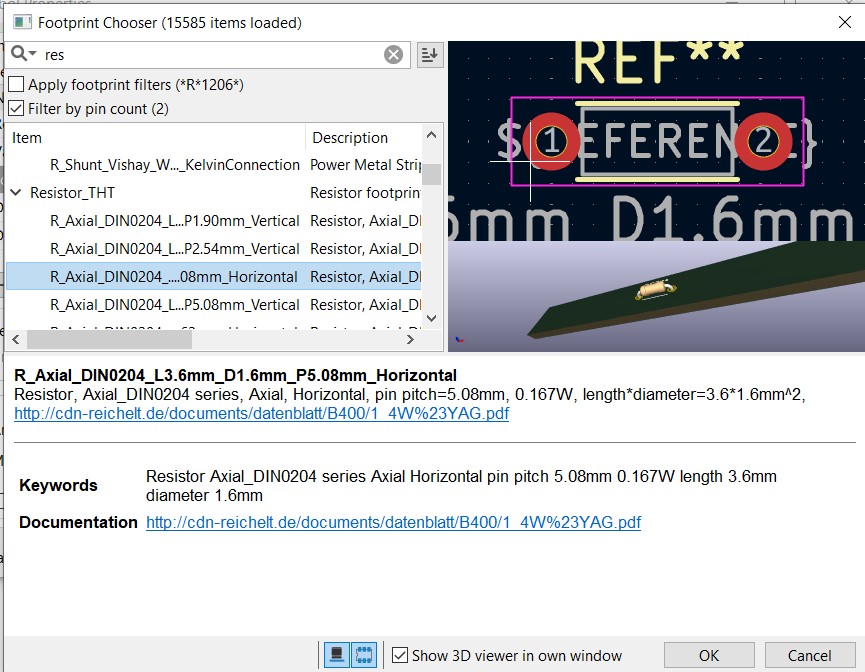 You can enable the 3D view to check component footprints and confirm they are correct.
